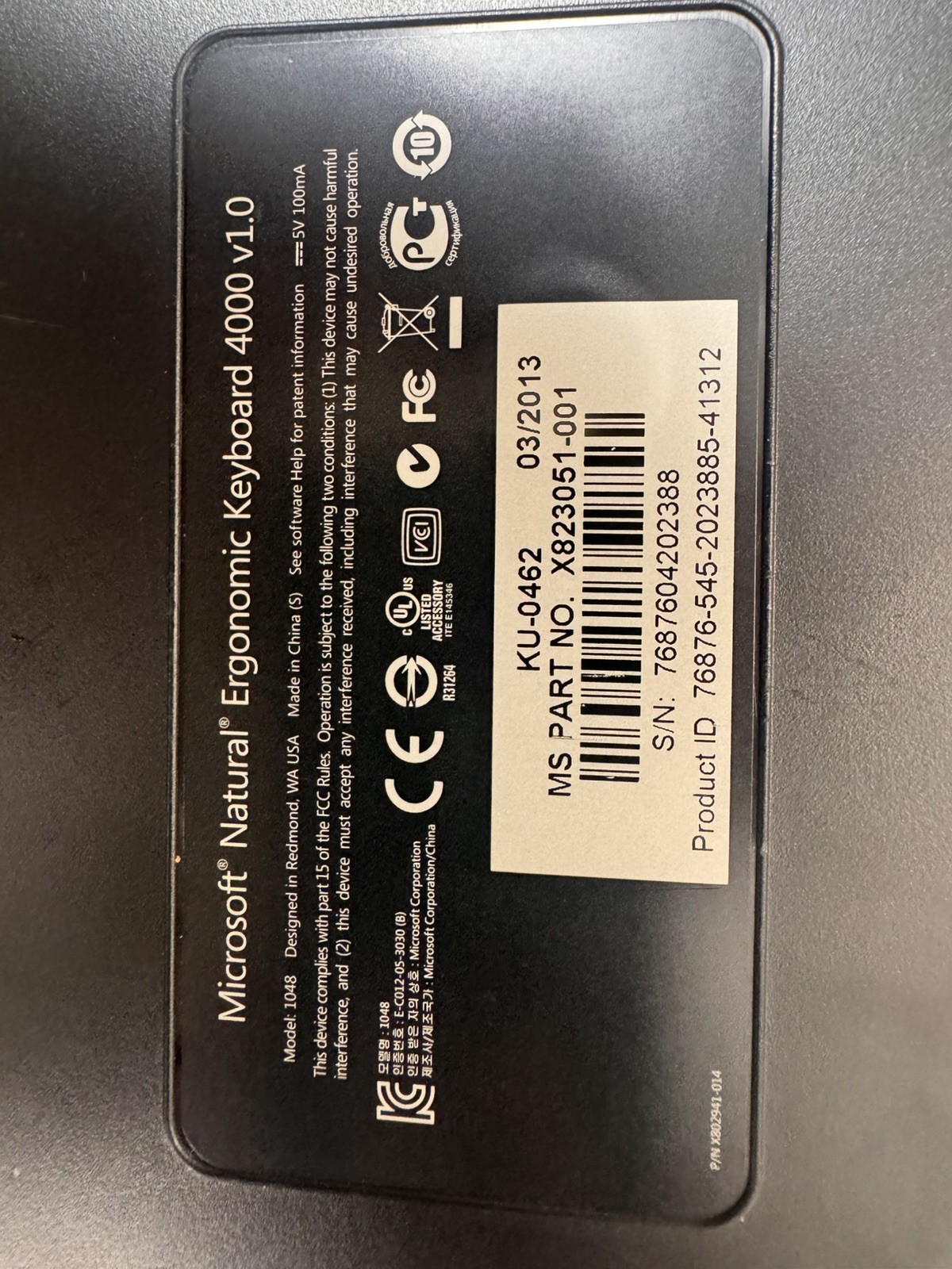 Microsoft Natural Ergonomic Keyboard 4000 V1.0 USB Wired Connection works