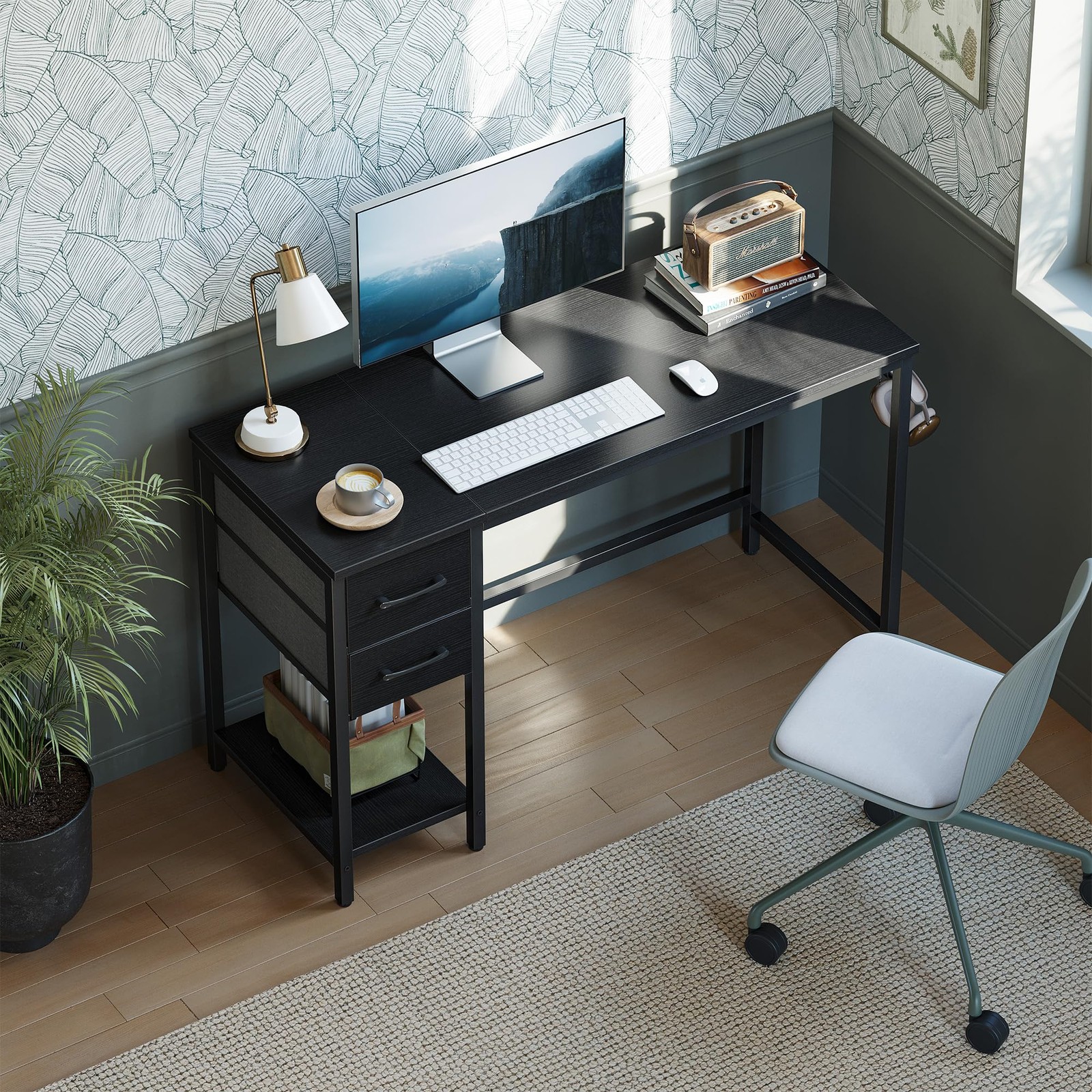 как выглядит Computer Desk with 2 Drawers, 40 Inch Small Home Office Desk Study Writing Ta... фото