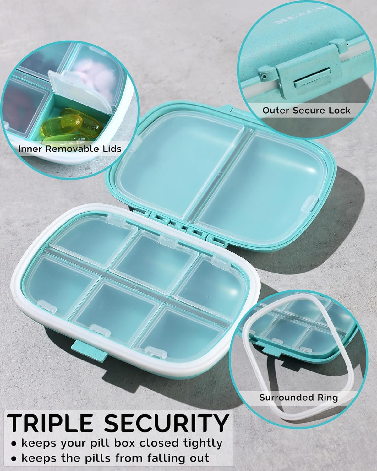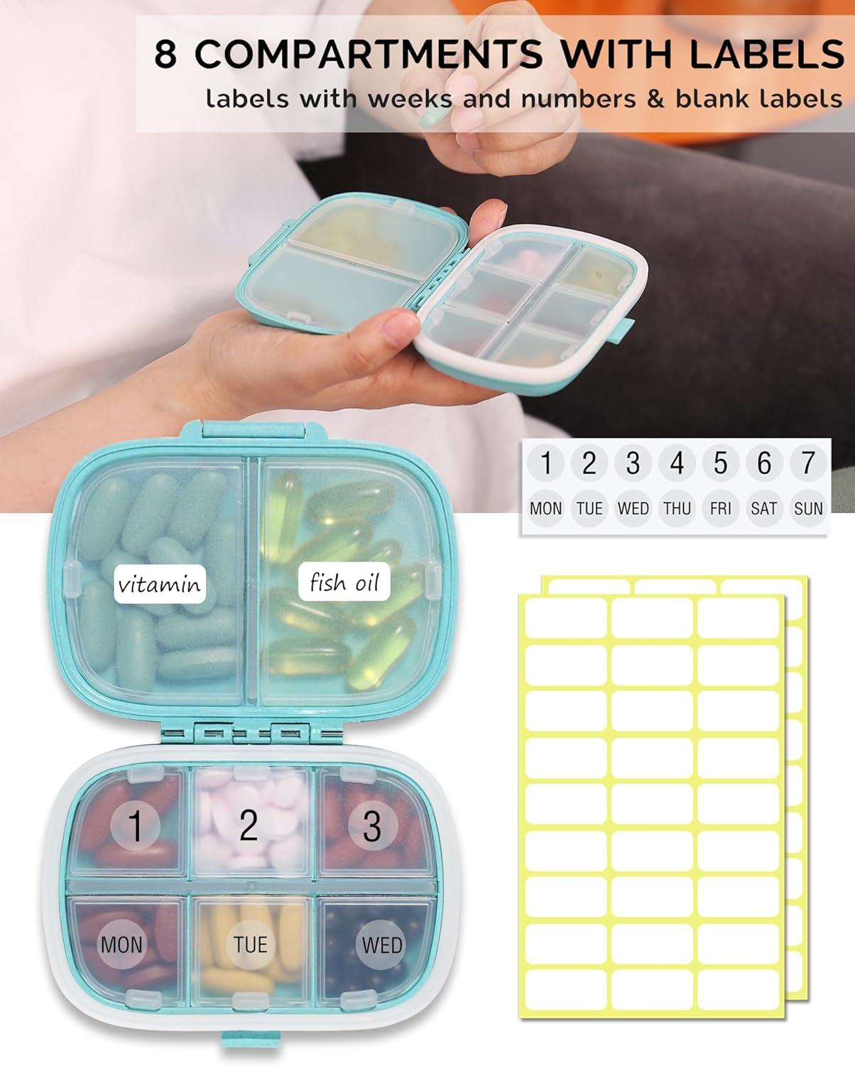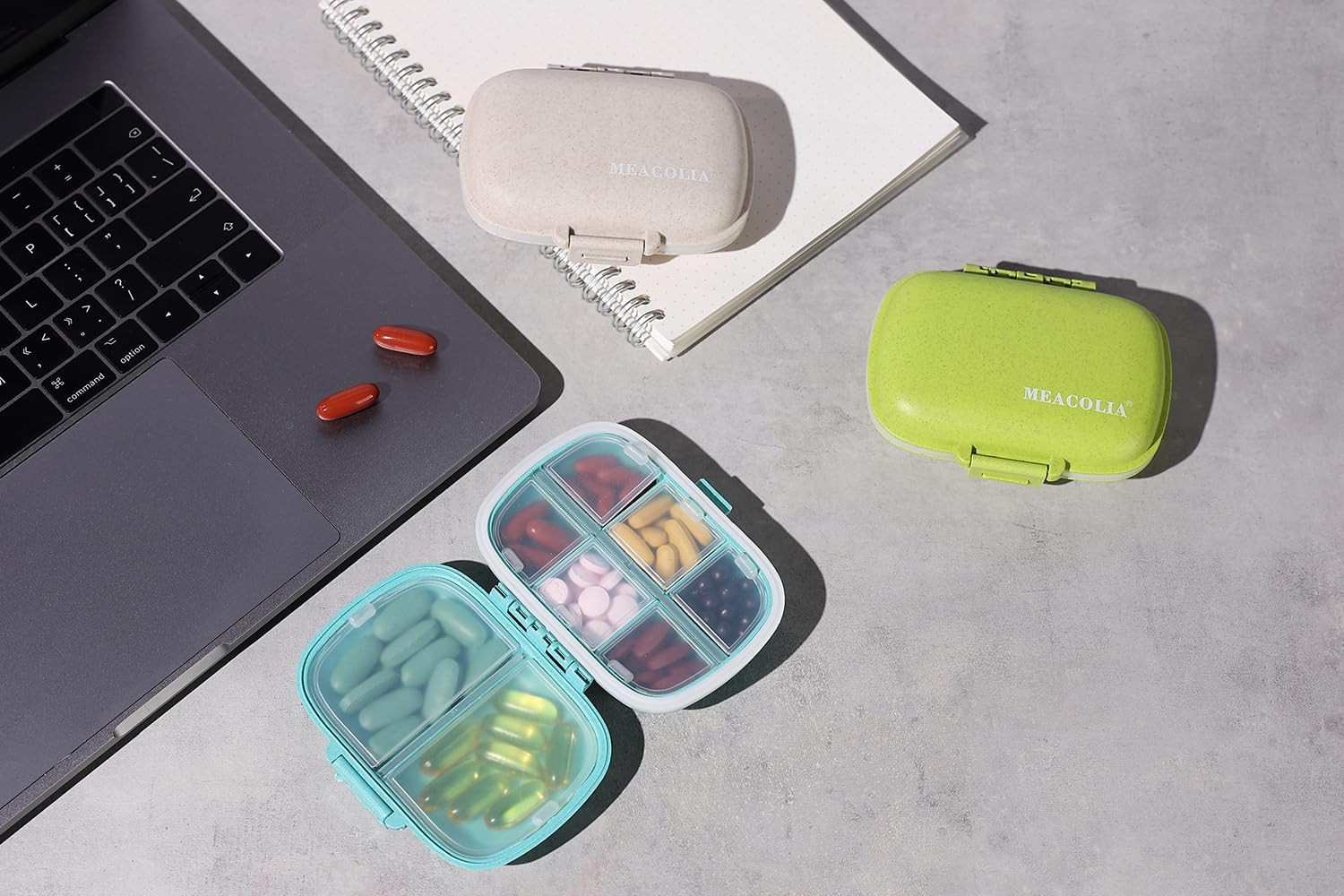 3 Pack 8 Compartments Travel Pill Organizer, Daily Pill Case Small Pill Box for