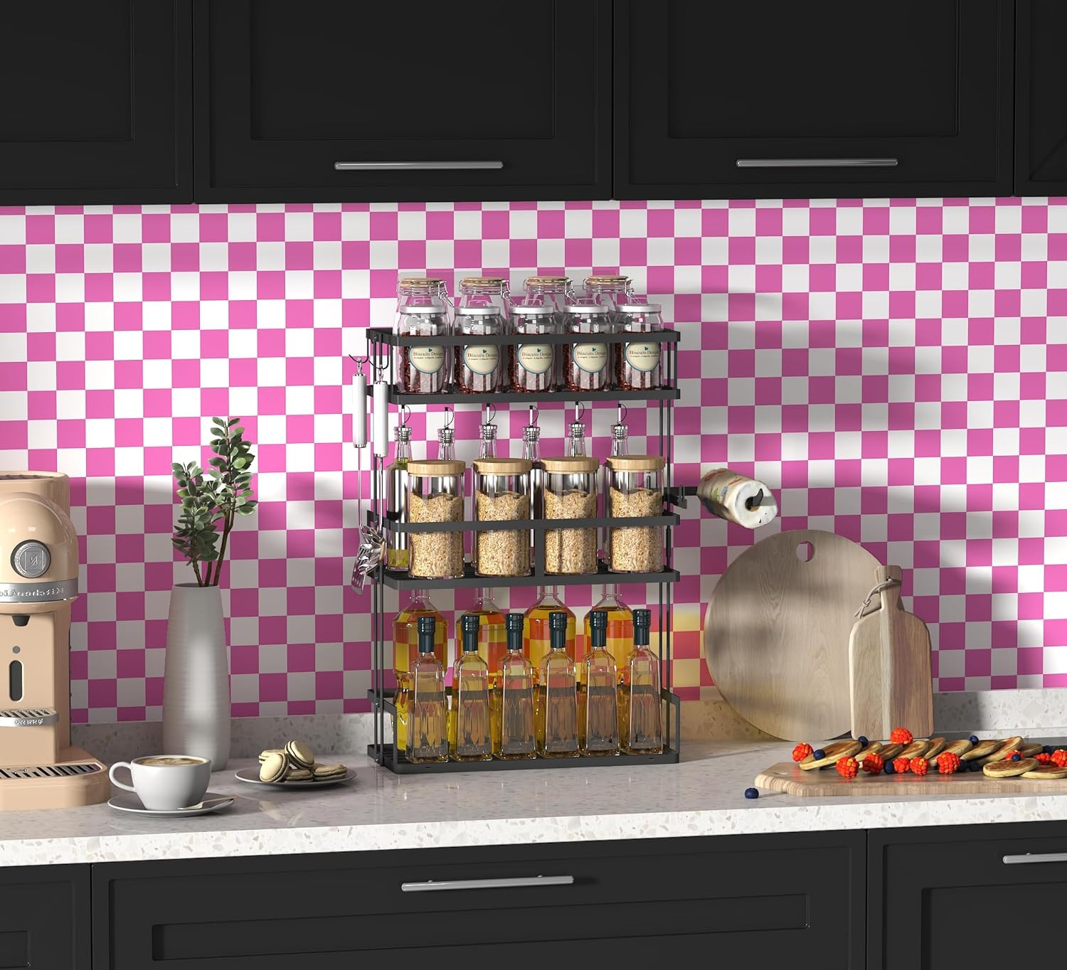 как выглядит Modern Peel and Stick Wallpaper Pink and White Mosaic Checkered Contact Paper 17 фото