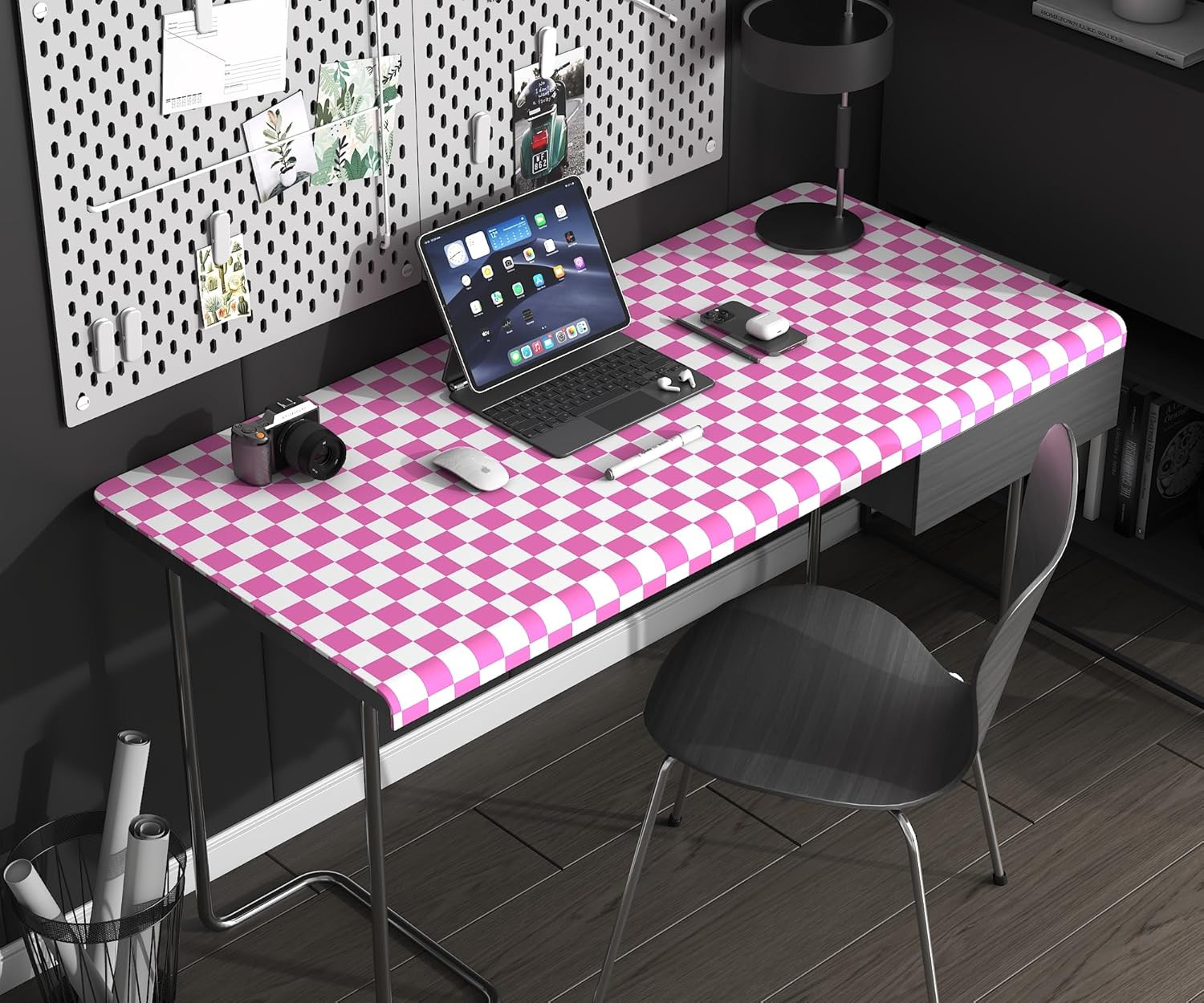 Modern Peel and Stick Wallpaper Pink and White Mosaic Checkered Contact Paper 17