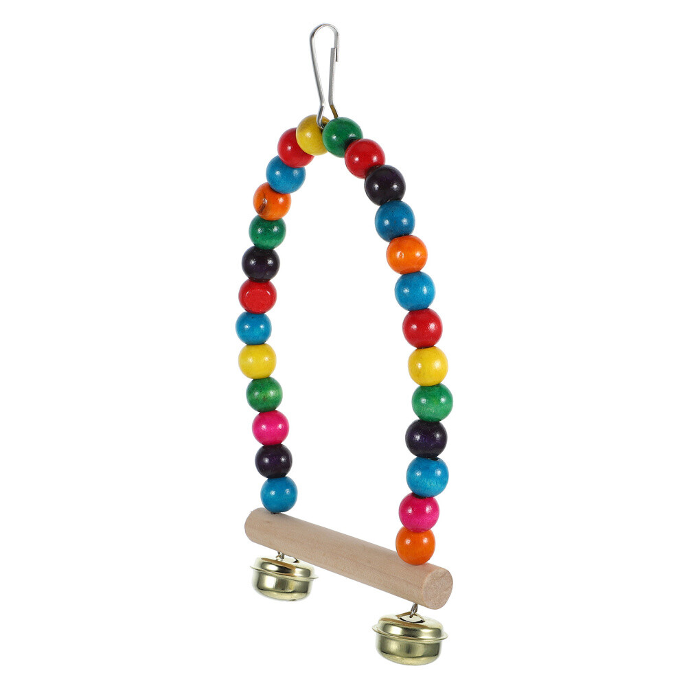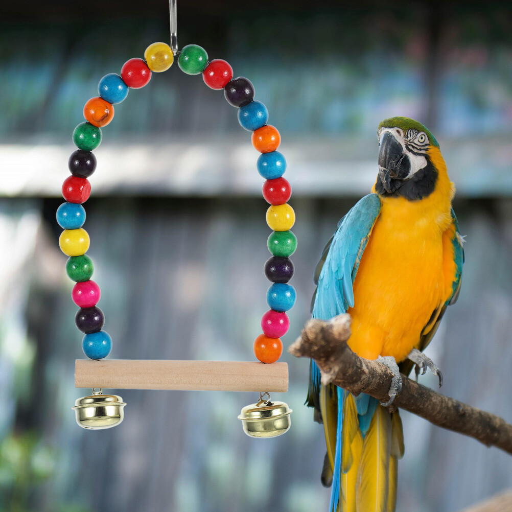 Bird Cage Hanging Perch with Bell Wooden Parrot Swing Bird Perch Hanging Stand