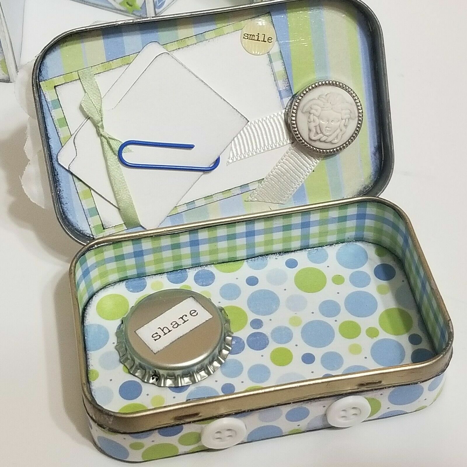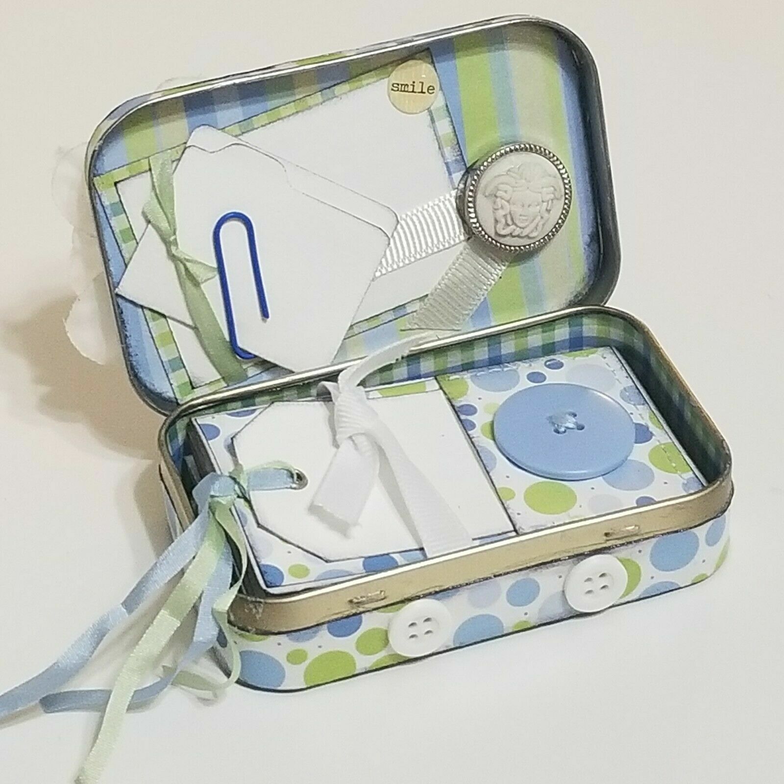как выглядит Altered Altoid Tin Mini Scrapbook Album Friends Handmade Blue Green 3.5x2.25" -L фото