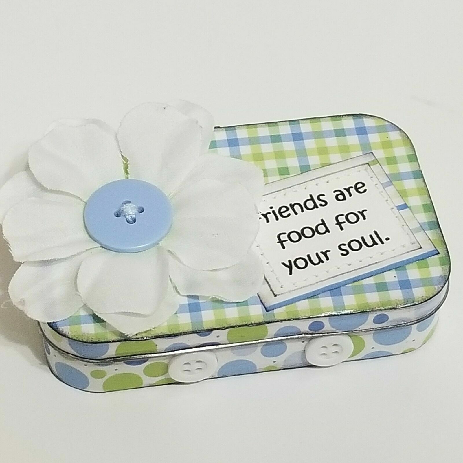Altered Altoid Tin Mini Scrapbook Album Friends Handmade Blue Green 3.5x2.25 -L
