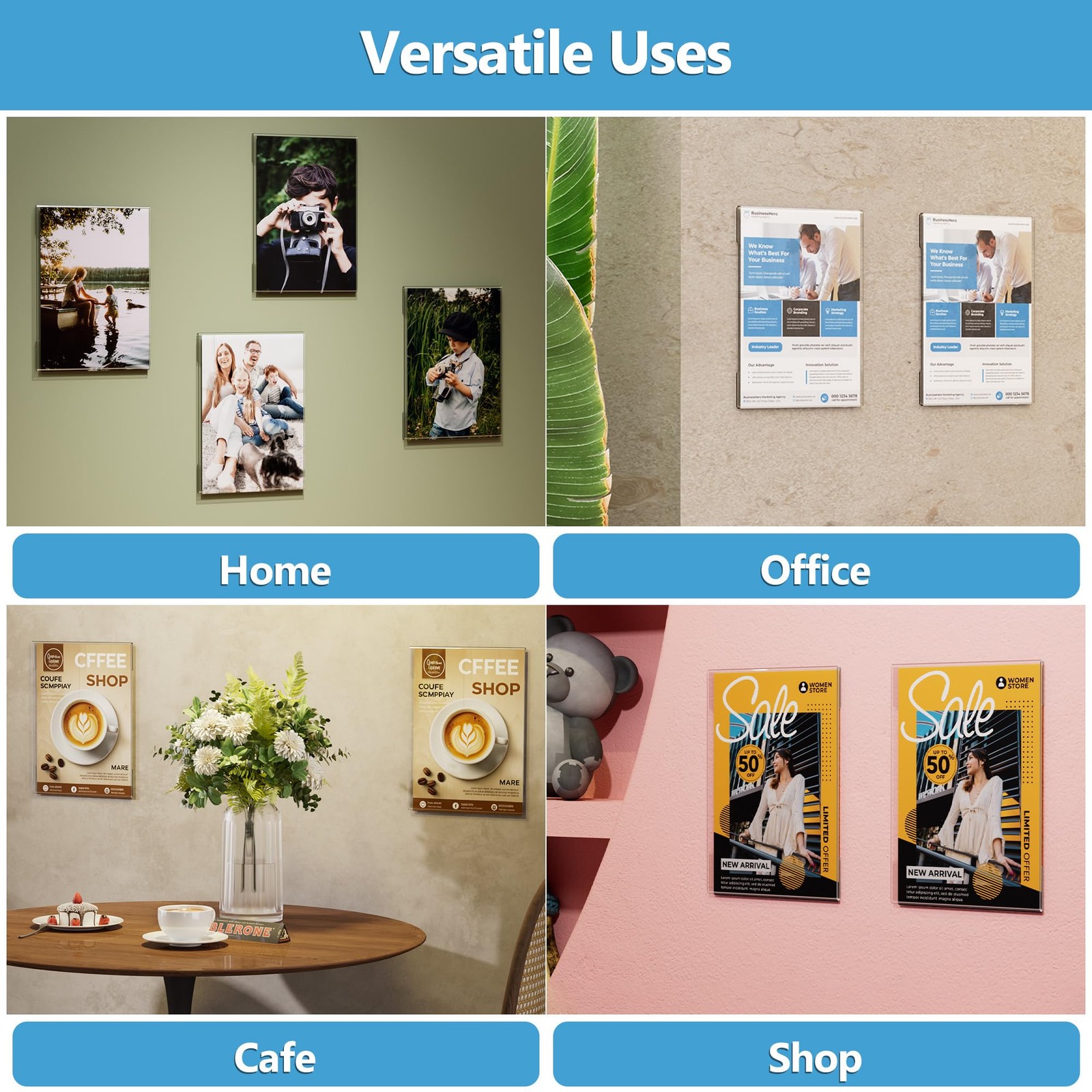 8 Pack Acrylic Sign Holder, 8.5 X 11 inch Wall Mount Clear Plastic Paper Sign...