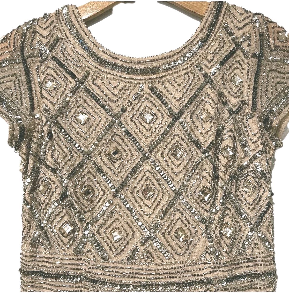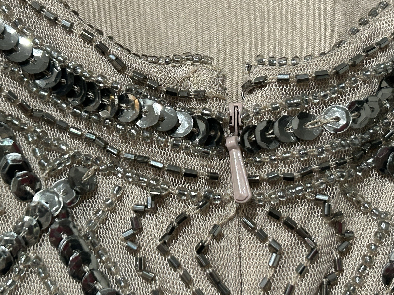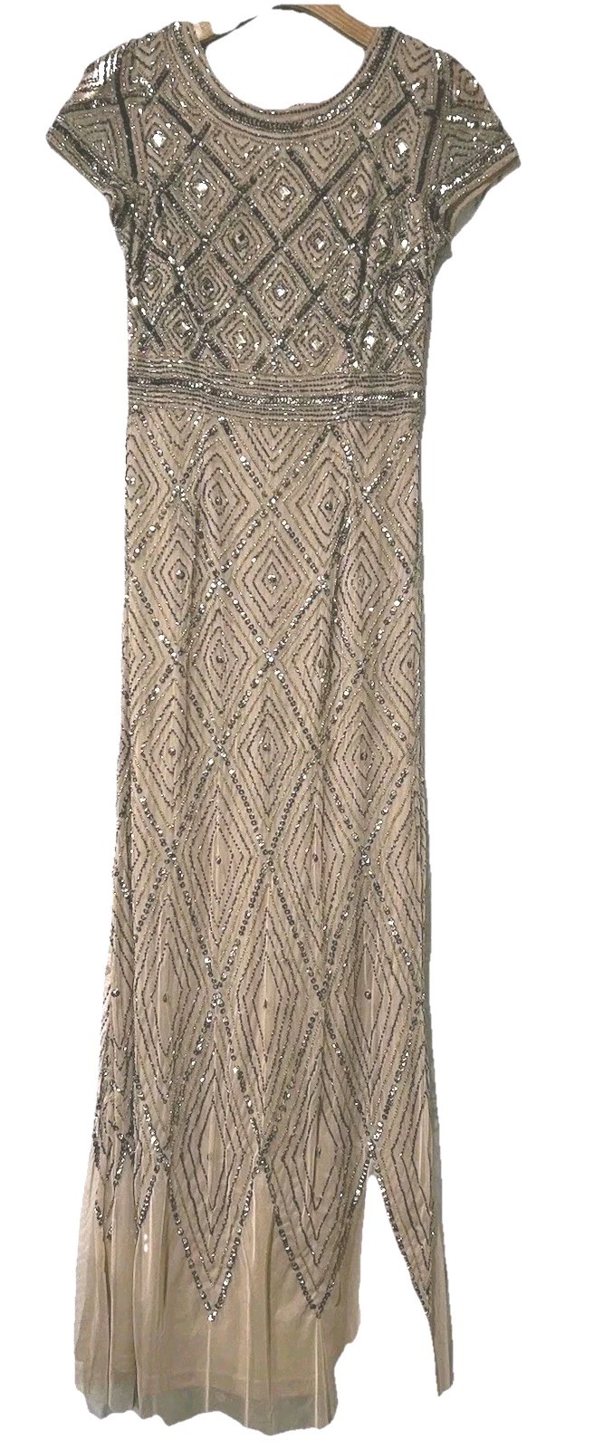 Adrianna Papell 2 Nude Mesh Sparkly Beaded Formal Evening Gown Maxi Dress