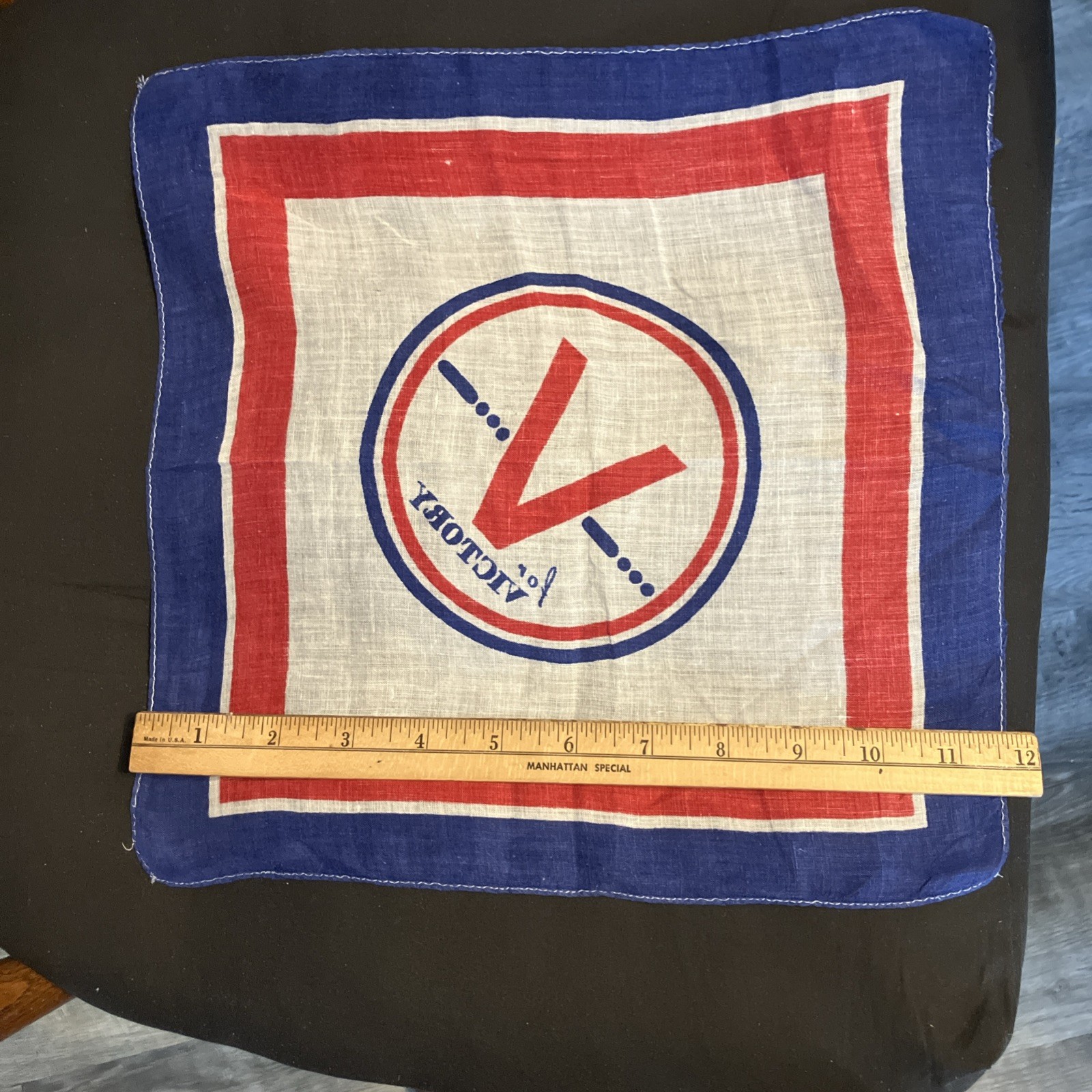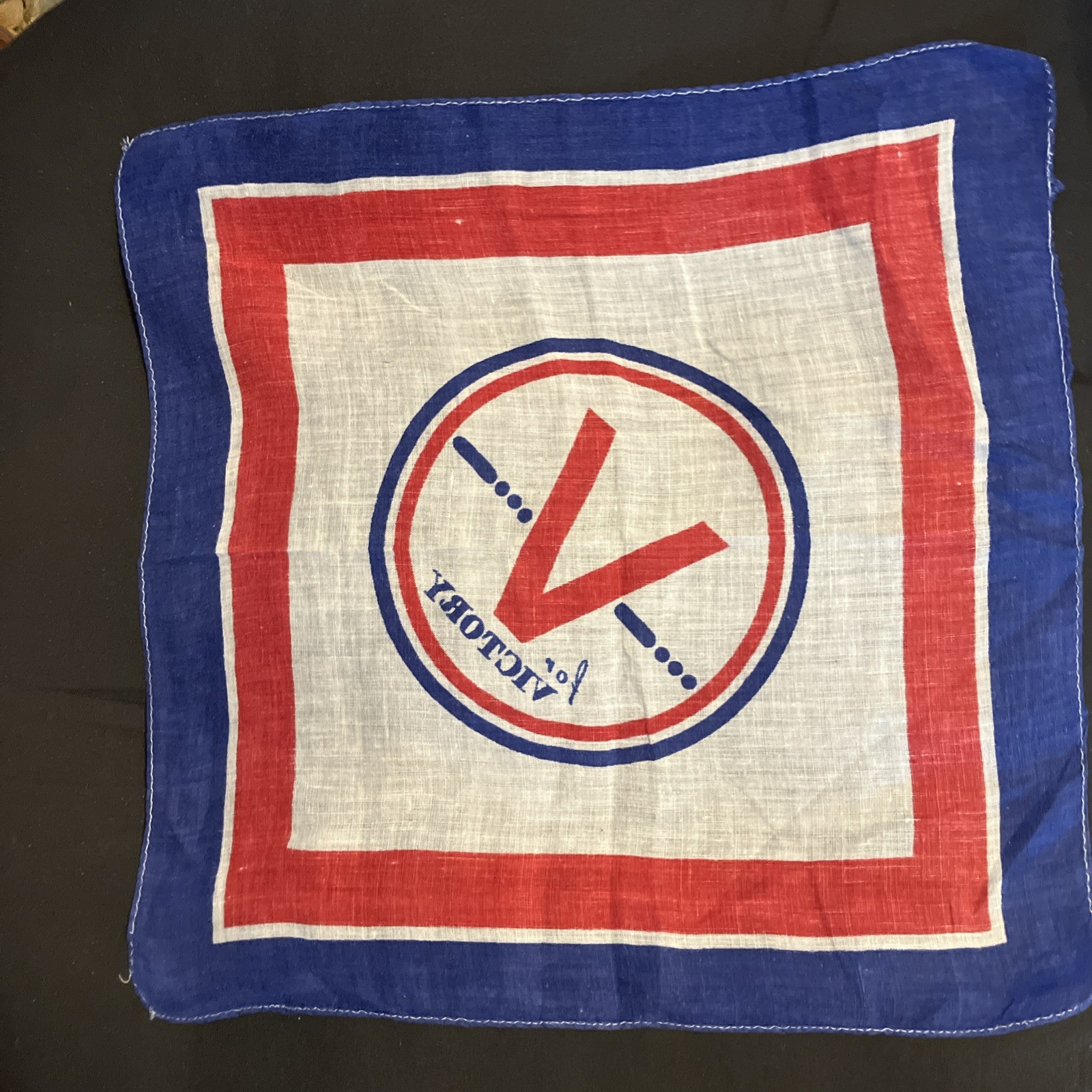 V For Victory World War 2 WWII Handkerchief Hankie Red White Blue