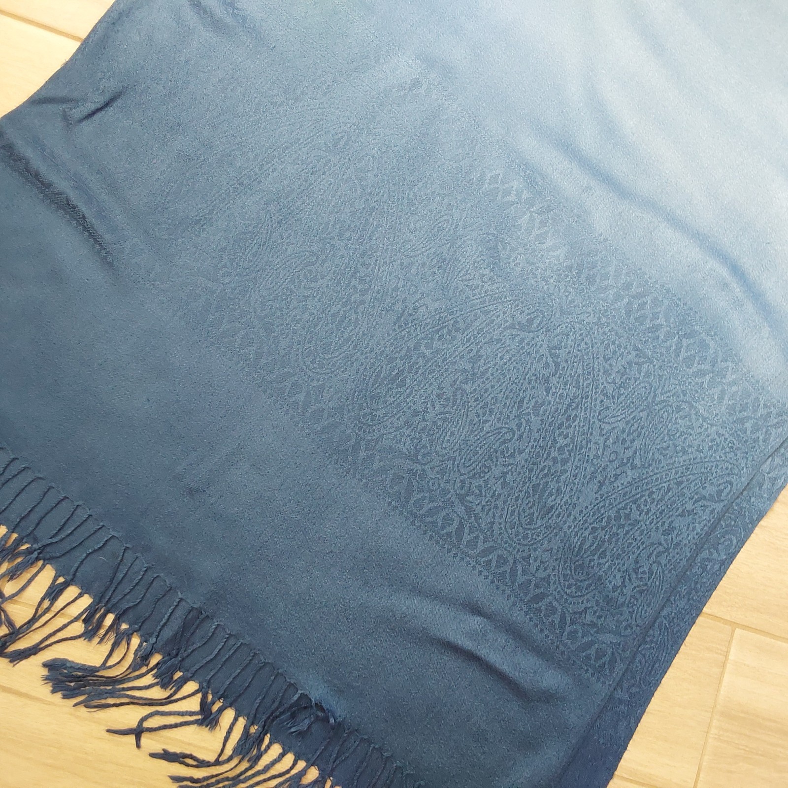Blue Ombre Woven Acrylic Oblong Fringed Scarf Shawl. Size 72x28
