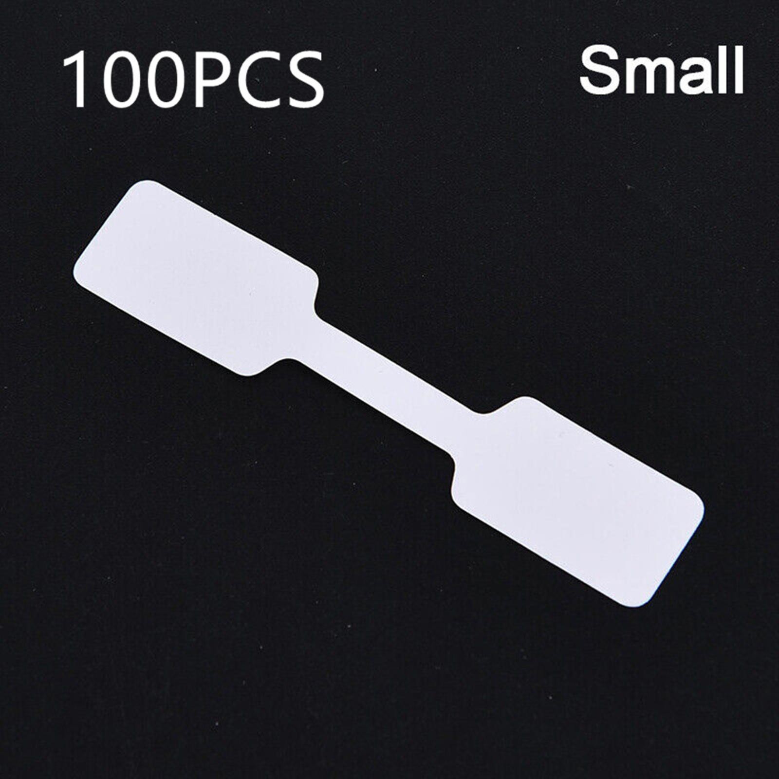 100x White Square Head Adhesive Price Label Tags with Hanging String uu