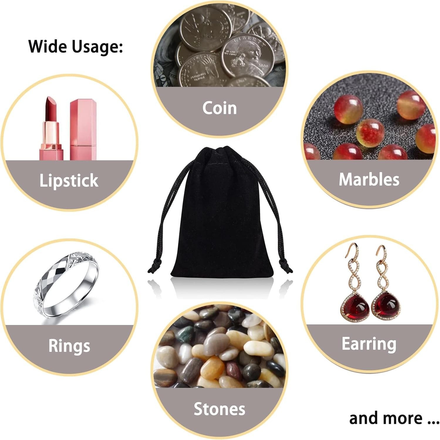 как выглядит Velvet Cloth Jewelry Bags, Small Drawstring Pouches, 3X4 Inch, 50 Pieces, Black фото