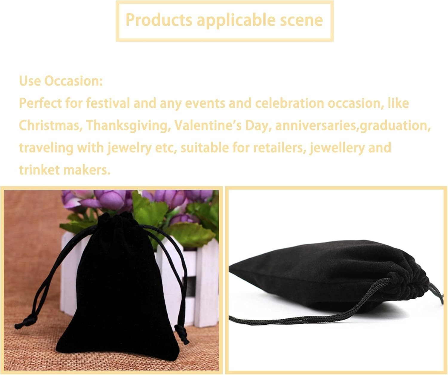 Velvet Cloth Jewelry Bags, Small Drawstring Pouches, 3X4 Inch, 50 Pieces, Black
