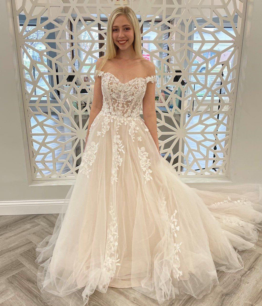 как выглядит Beach Wedding Dresses Off The Shoulder Lace Boho Sweep Train Bridal Gowns фото