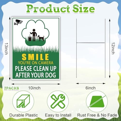 2 Pack Clean Up After Your Dog Sign No Pooping Dog Signs for Yard 13x10