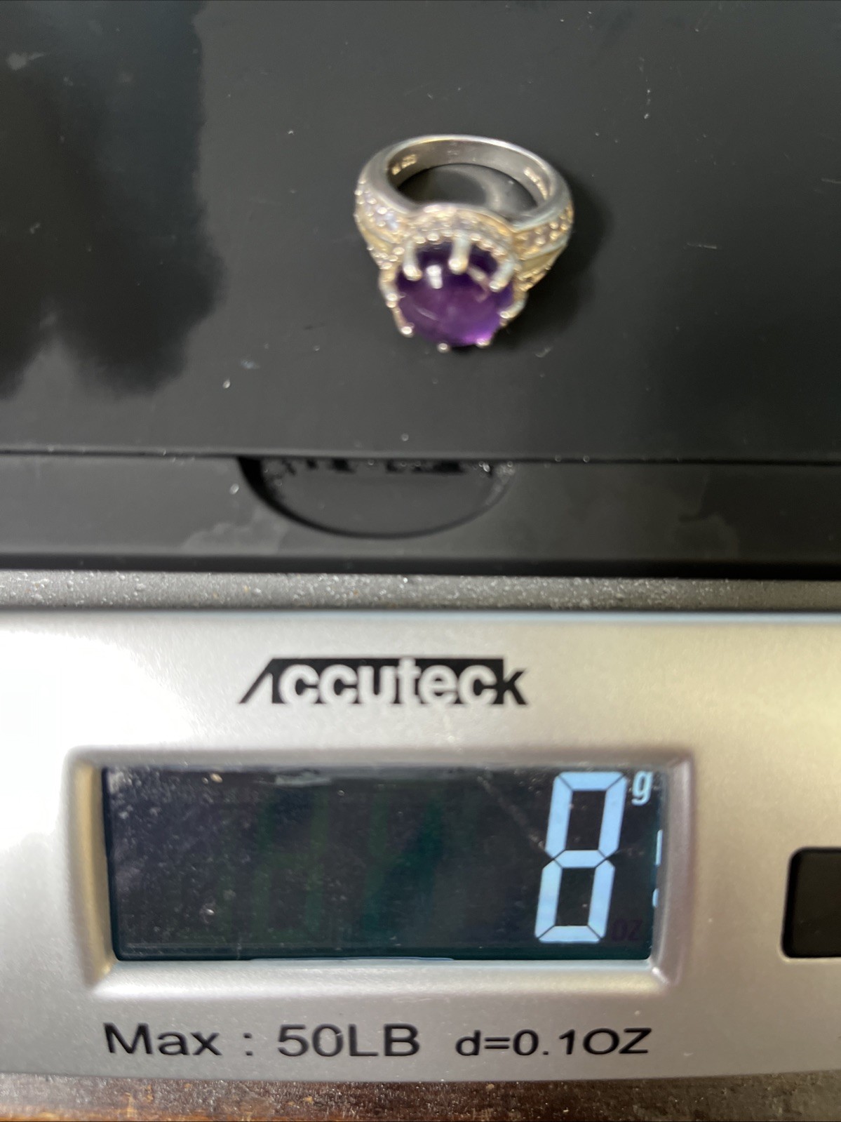 как выглядит Sterling 925 Ring Amethyst CZ Round Stone High Setting 8 Grams Womens Size 7 фото