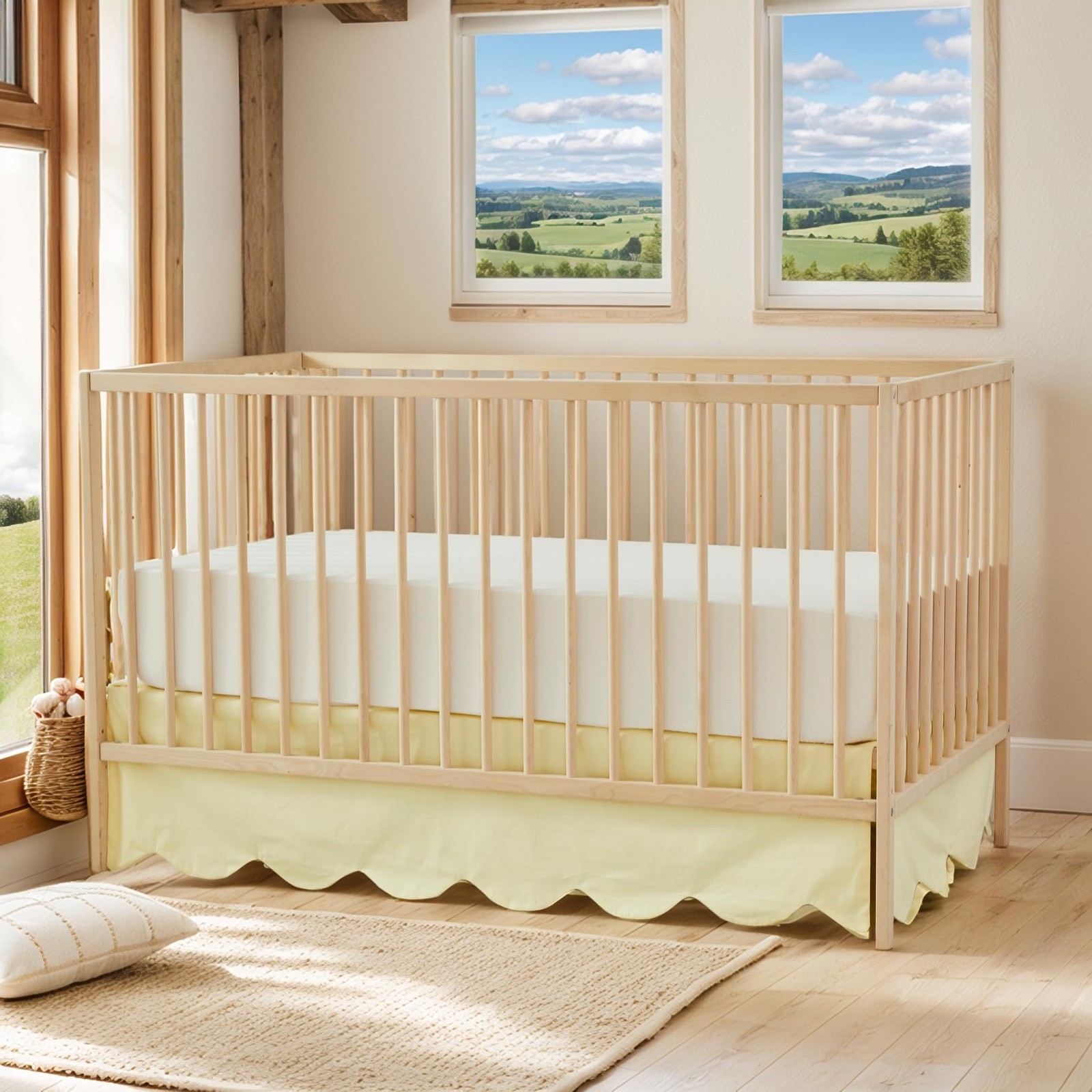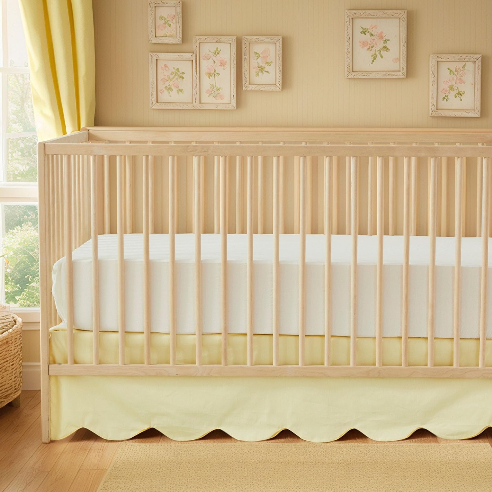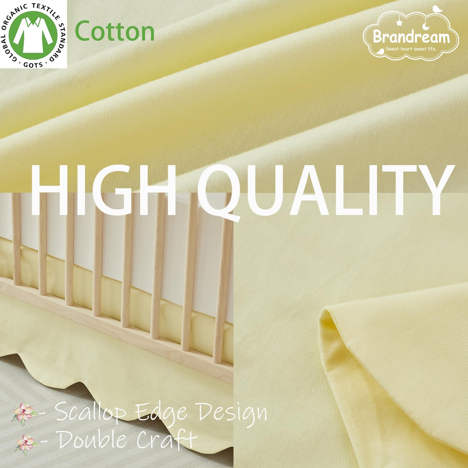 Brandream Scallop Edge Cotton Crib Skirt - Toddler Bedskirt Nursery