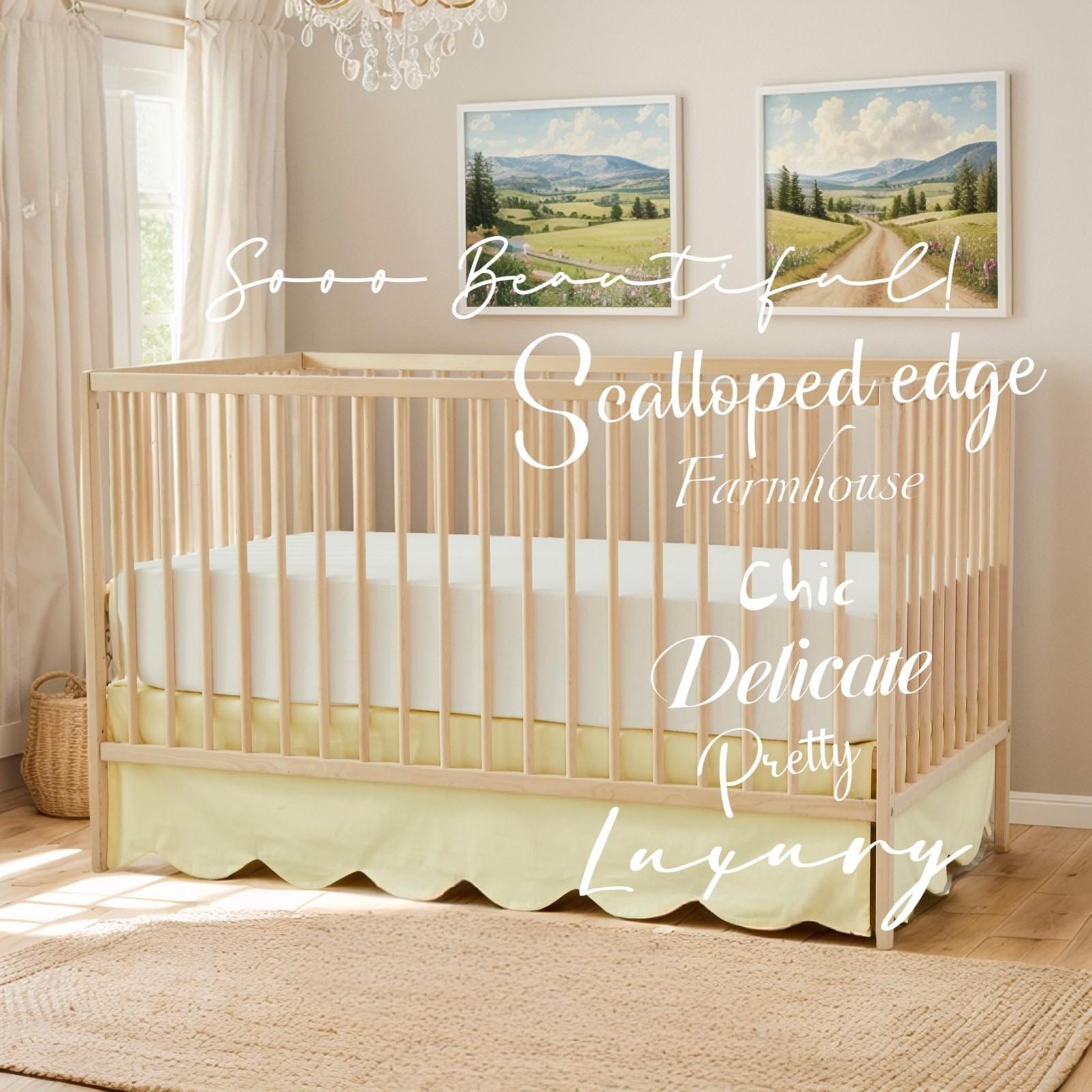 как выглядит Brandream Scallop Edge Cotton Crib Skirt - Toddler Bedskirt Nursery фото