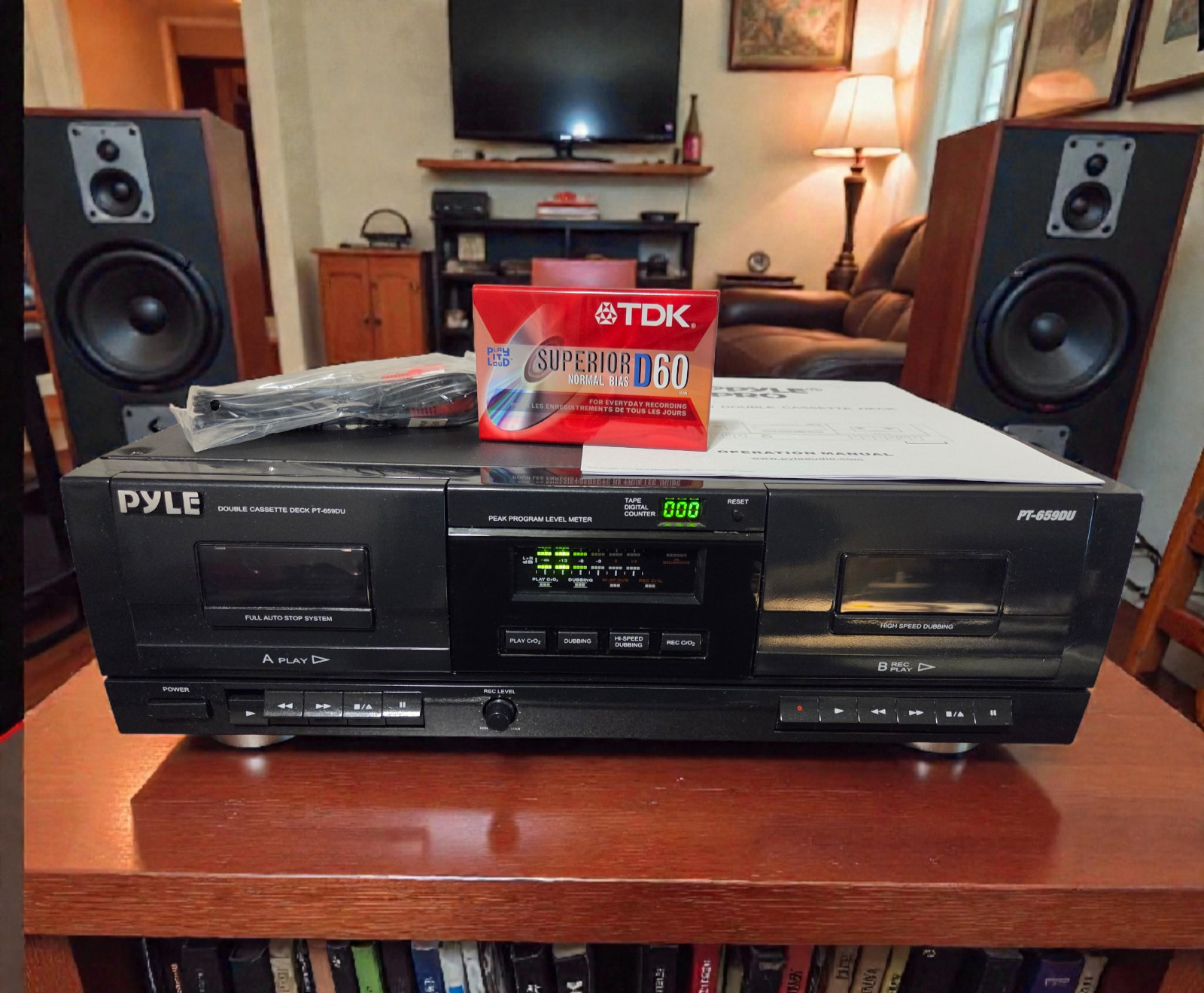 Pyle Dual Stereo Cassette Deck Tape USB to MP3 Convert High Sp Dubbing Serviced
