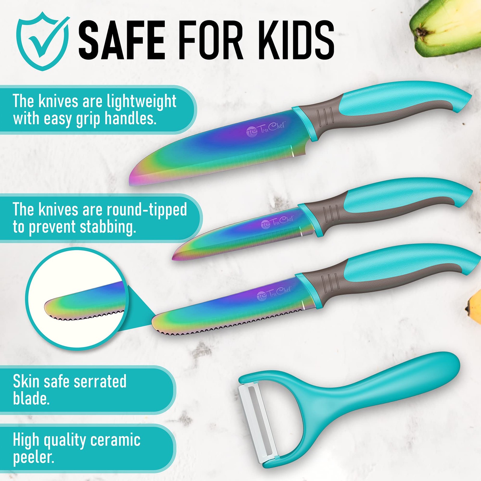 5-Piece Kids Cooking Chef Knife Set Real Stainless Steel Knives with Peeler...
