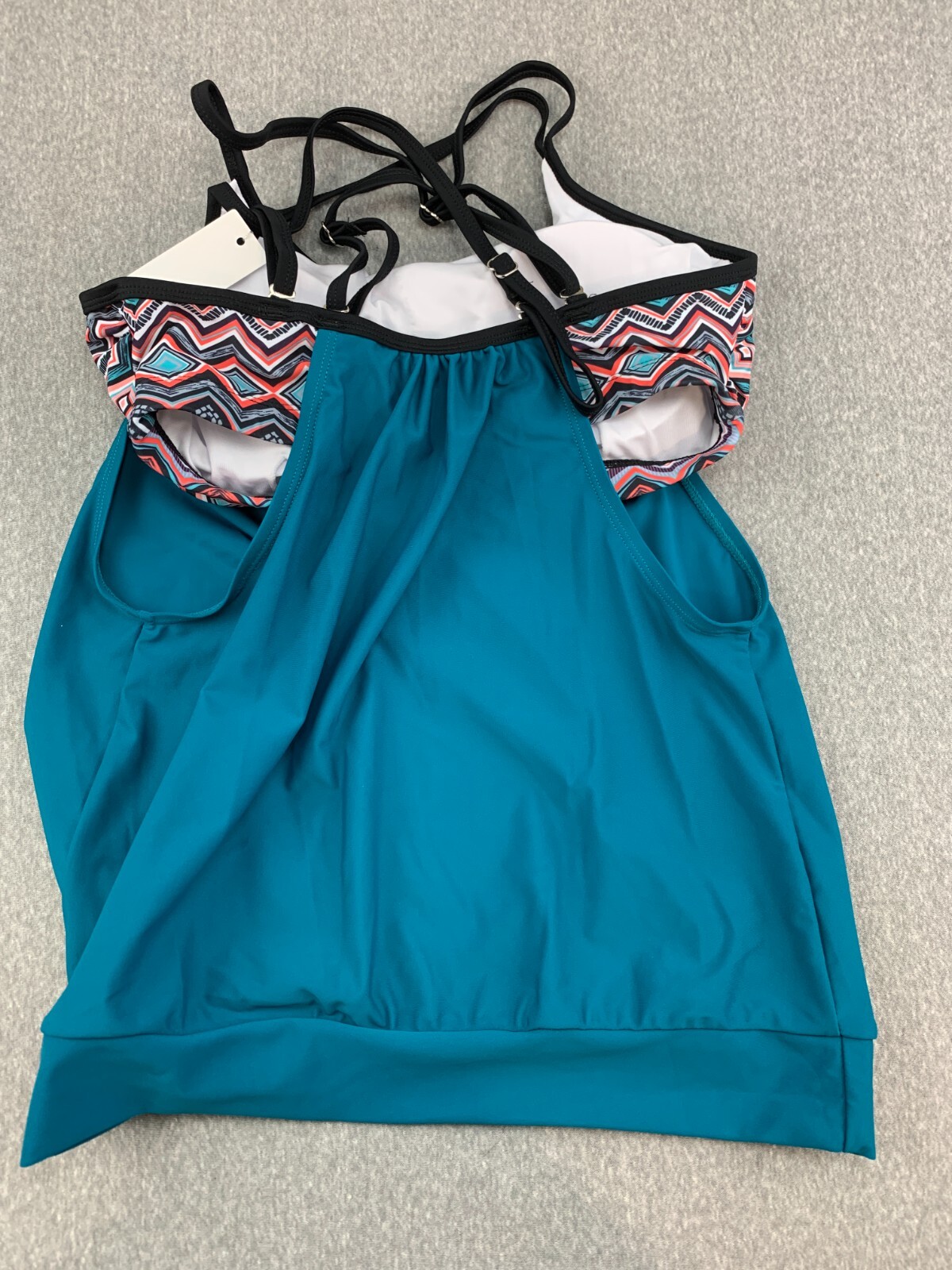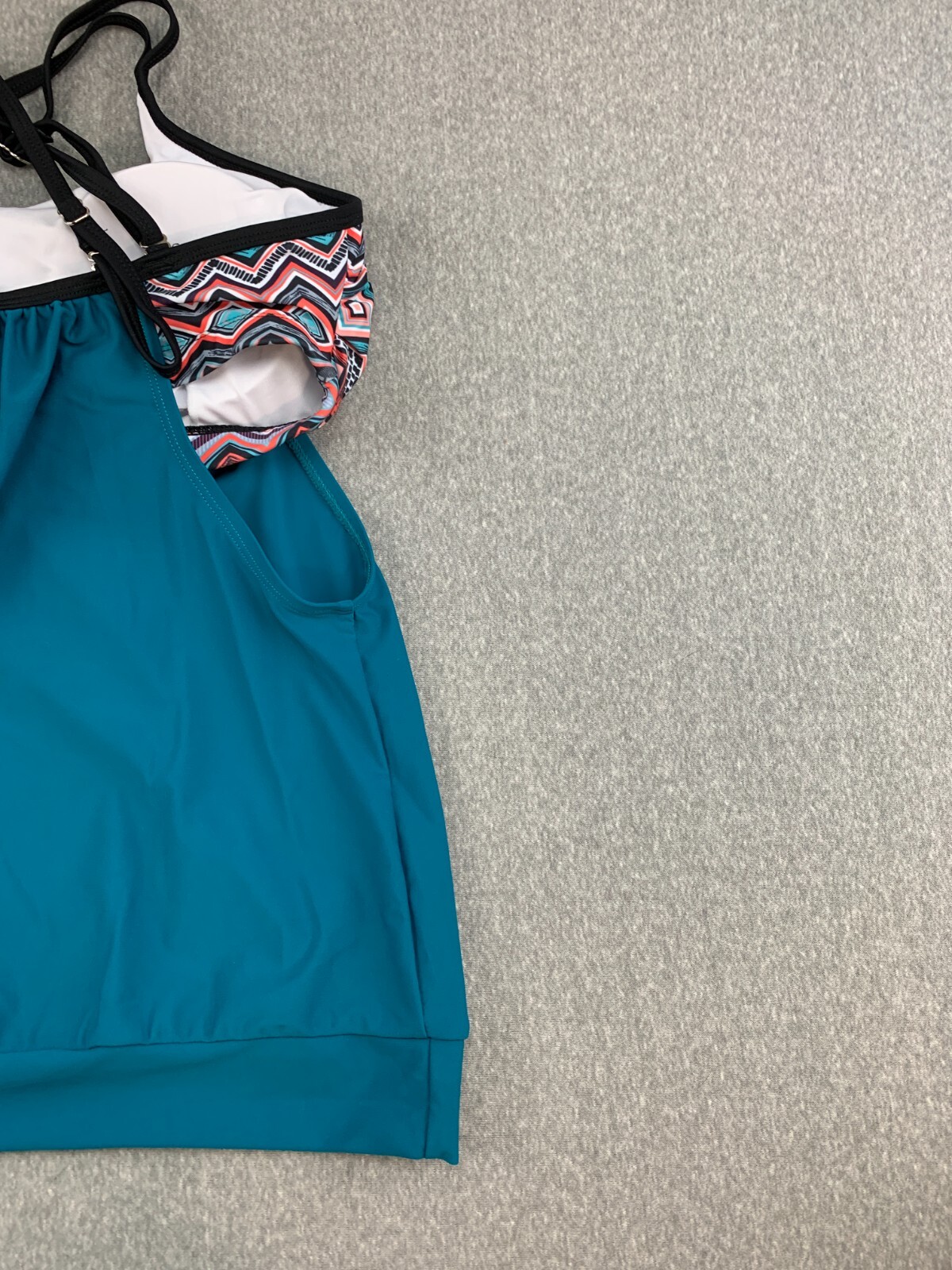 Holipick Tankini Swimsuit Athletic Top Womens size 16w Aztec Print Teal Blue Fun