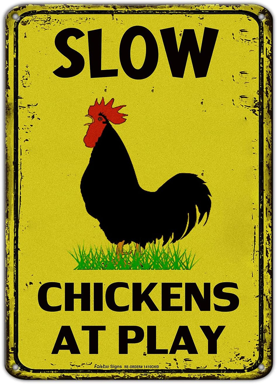 Slow Chickens at Play Caution or Chicken Crossing Sign, 14x10 Inch Rust Free ...