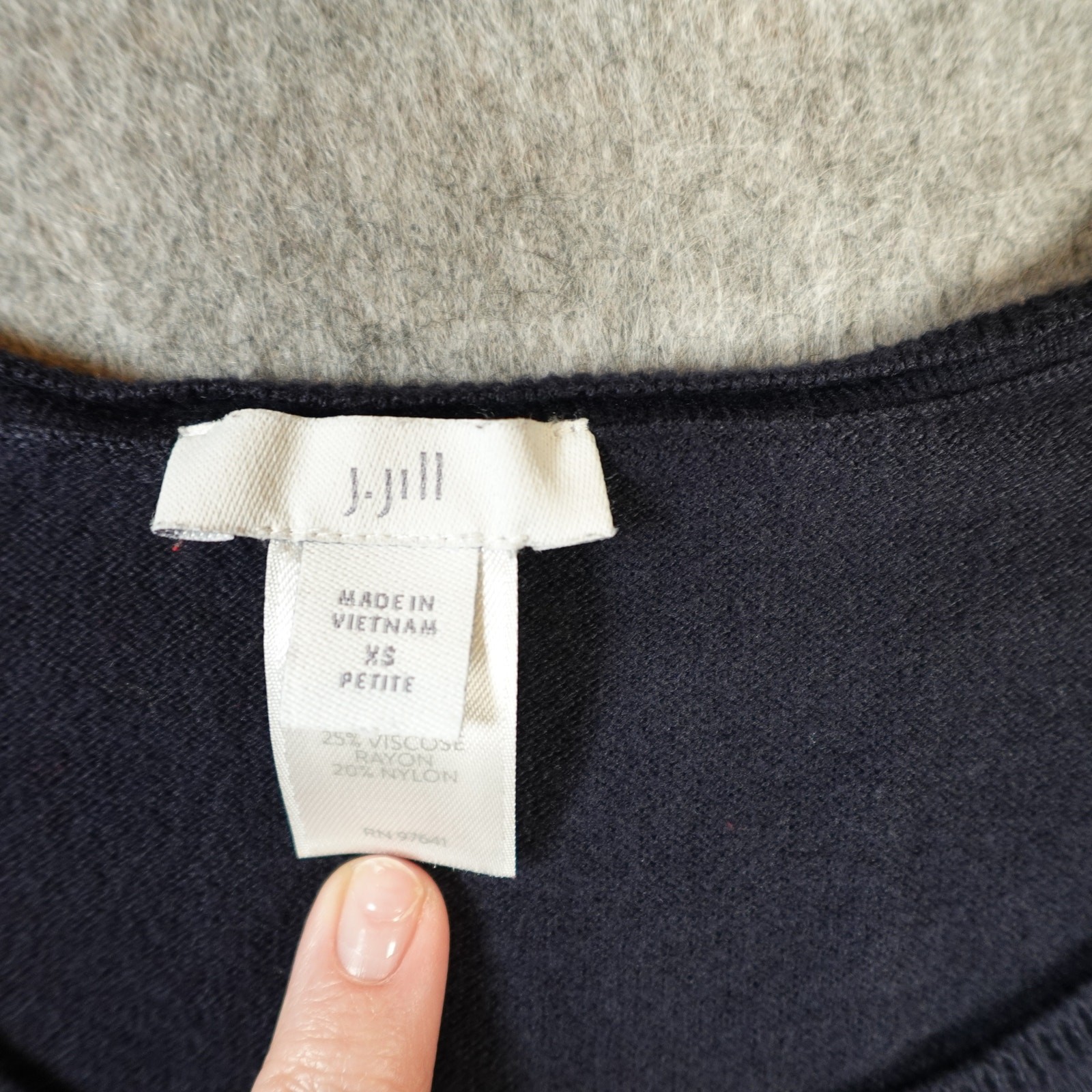как выглядит J. Jill Sweater Womens Extra Small Petite Crew Neck Navy Blue Long Sleeve Jumper фото