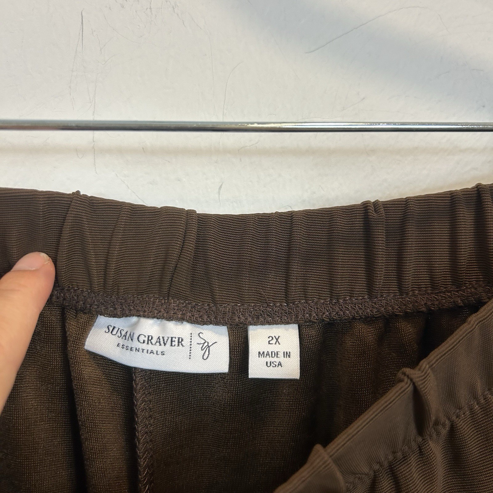 Susan Graver Essentials A32357 Lustra Knit Regular Pull-on Pants Brown Size 2X