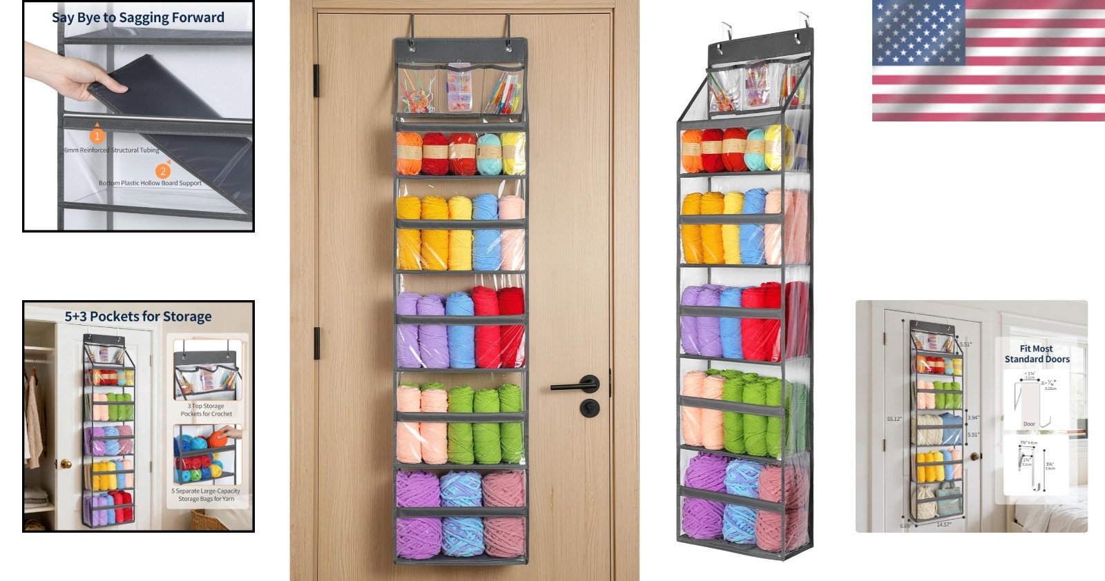 Multi Functional Over the Door Yarn Storage for Knitting Needles and Accessories