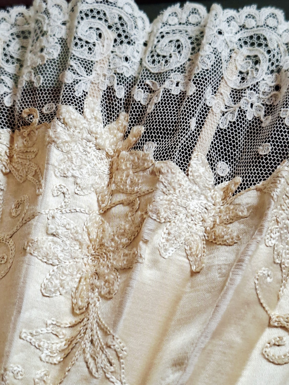 как выглядит French Mother of Pearl Lace Fan c 1890 Belveled Glass Box Antique Original фото