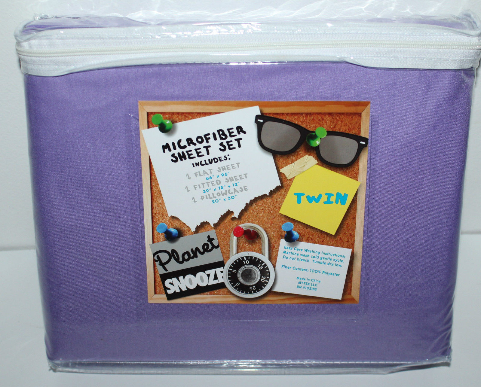 PLANET SNOOZE TWIN SHEET BED SET PURPLE COTTON RICH 3 PIECE SET BEDSHEET