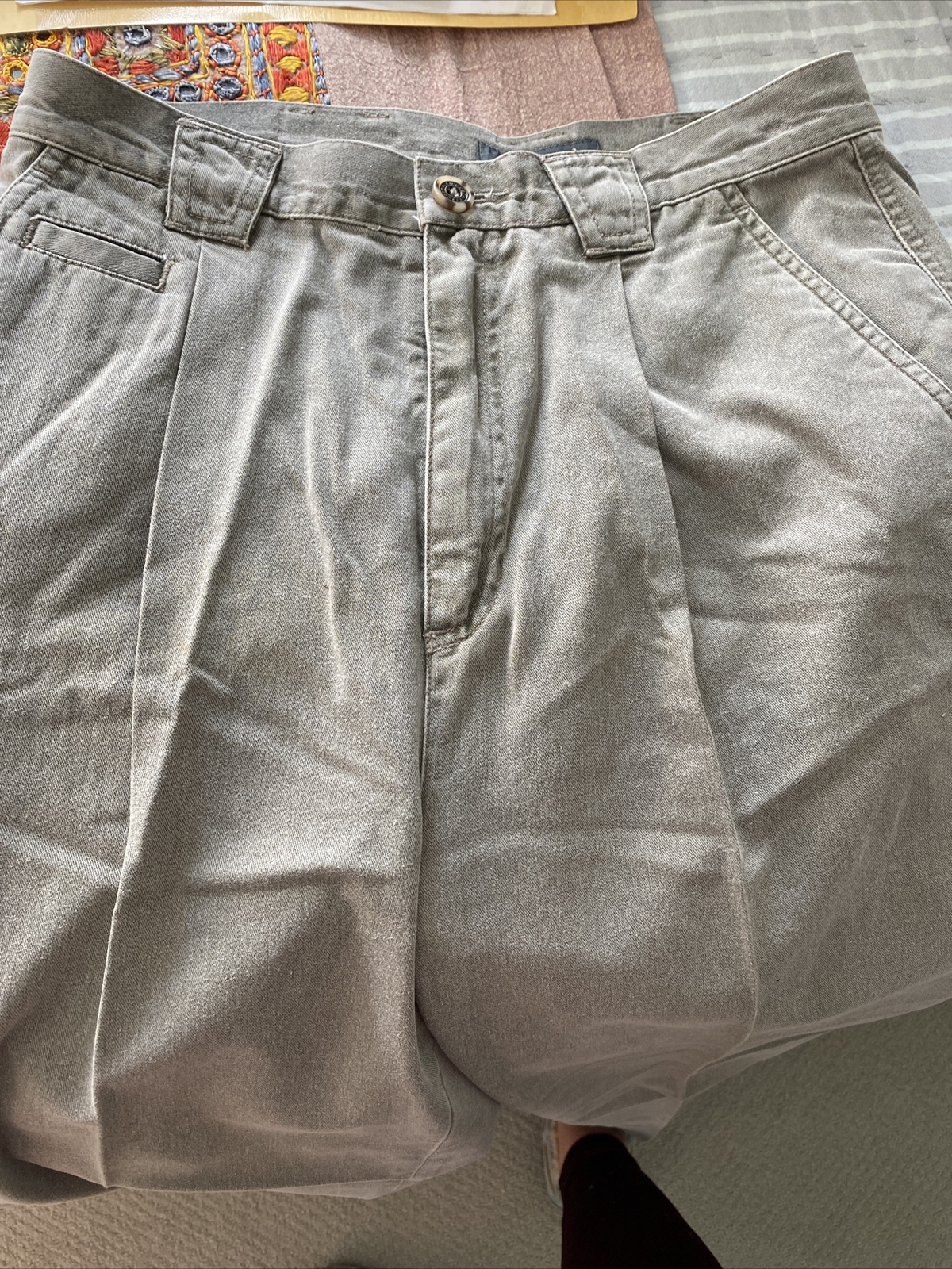 Lizwear soft cotton army green pleated pants casual size 10