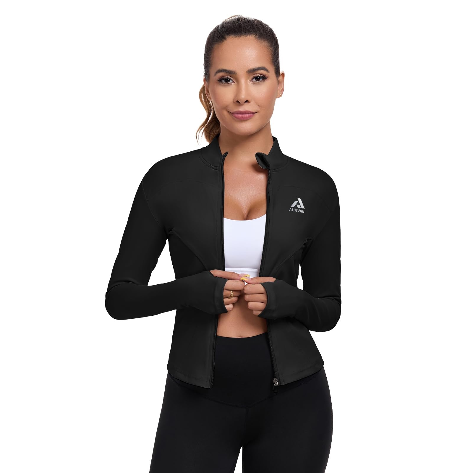 AURVAE Women's Workout Jacket, Womens Cropped Lightweight Medium, Black