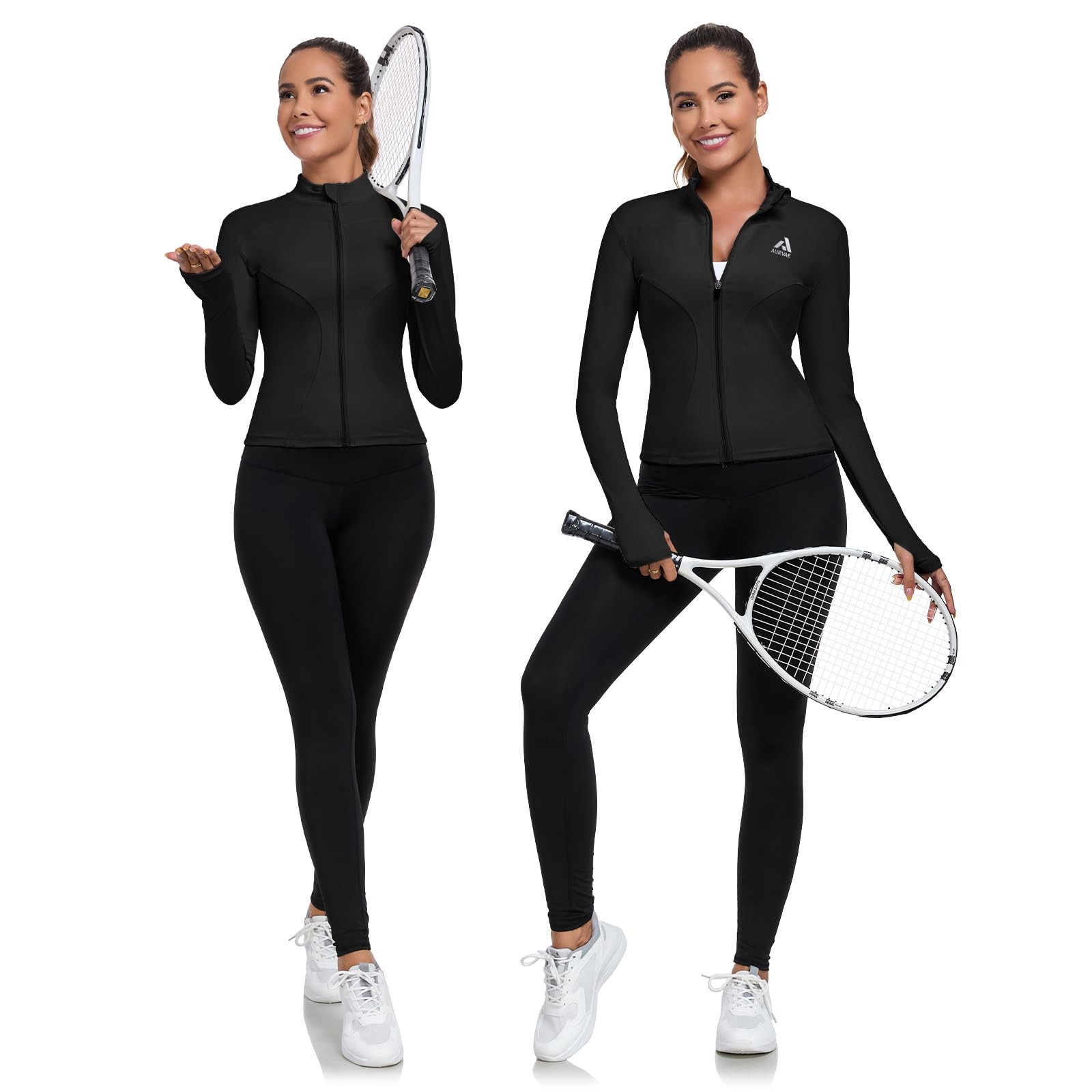 как выглядит AURVAE Womens Workout Jacket, Womens Cropped Lightweight Medium, Black фото