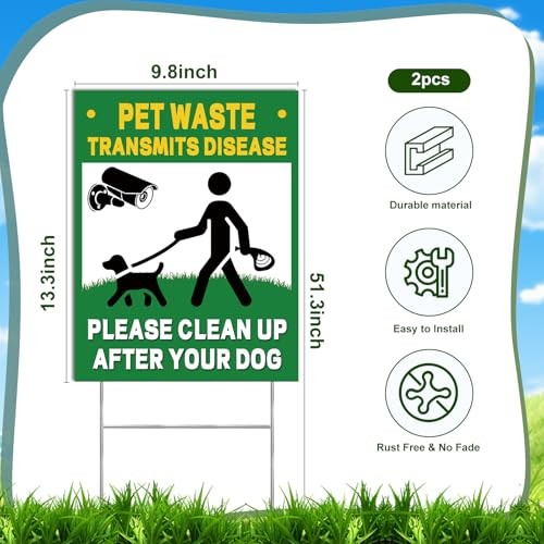 2-Pack No Pooping Dog Signs for Yard Clean Up After Pet Waste, 13x10