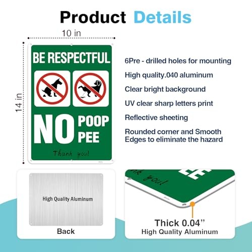 10 1Inch No Dog Poop Pee Sign - Aluminum Weatherproof Rustproof Reflective 4