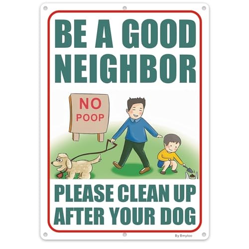 Large Clean Up after Your Dog Signs, 10 x 14 No Pooping Dog Sign for Yard