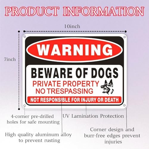4 Pack Beware of Dog Sign,10x7 inch High Reflective Beware of Dog Signs for
