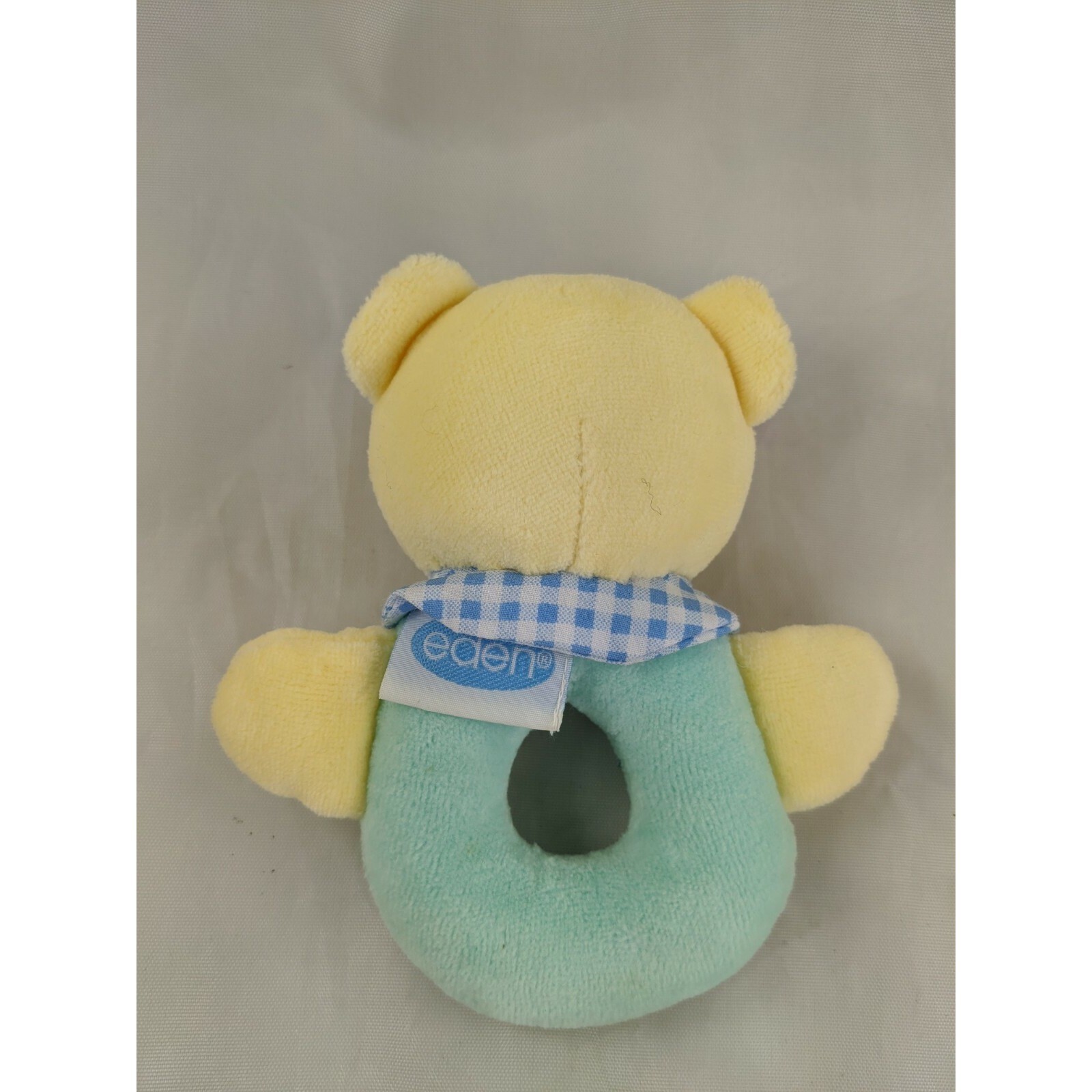 Eden Bear Rattle Ring Plush 5 Inch Yellow Green Stuffed Animal Toy
