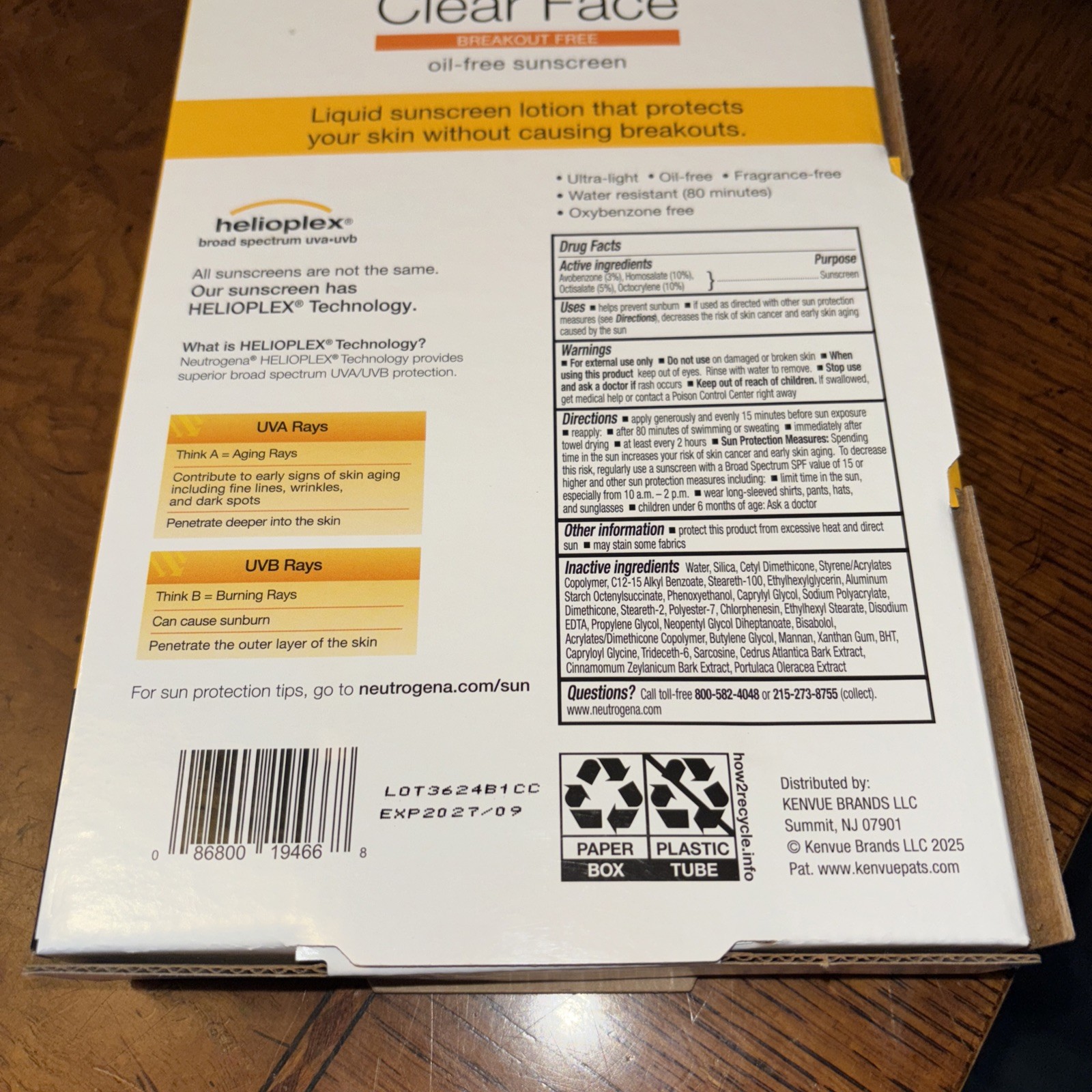 Neutrogena Clear Face Sunscreen, SPF 50, 3 oz., 2 pk. FREE SHIPPING