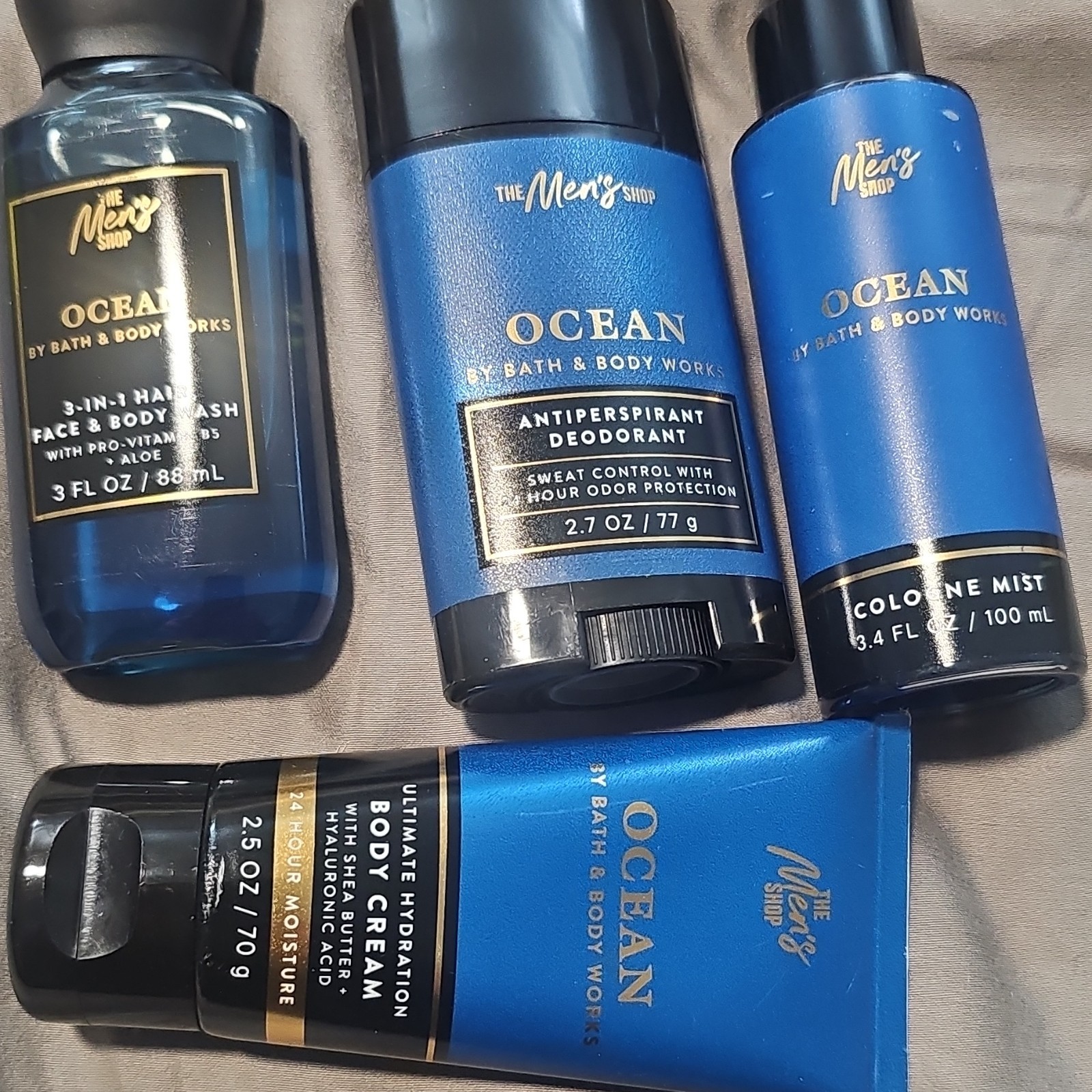 Bath Body Works Ocean Men's Travel Set: Mist, Deodorant, Wash, Cream, Bag