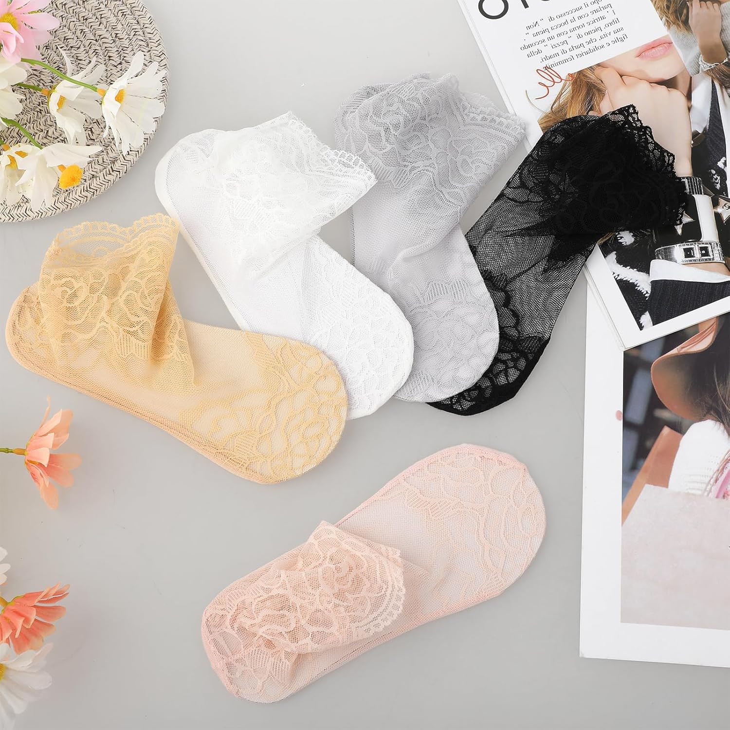 5 Pairs Women s Sheer Lace Fishnet Ankle Socks Mesh Loose Socks for Girls