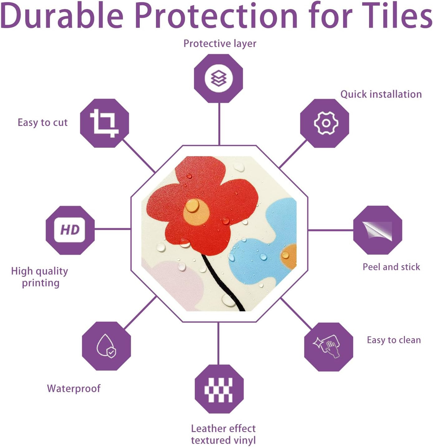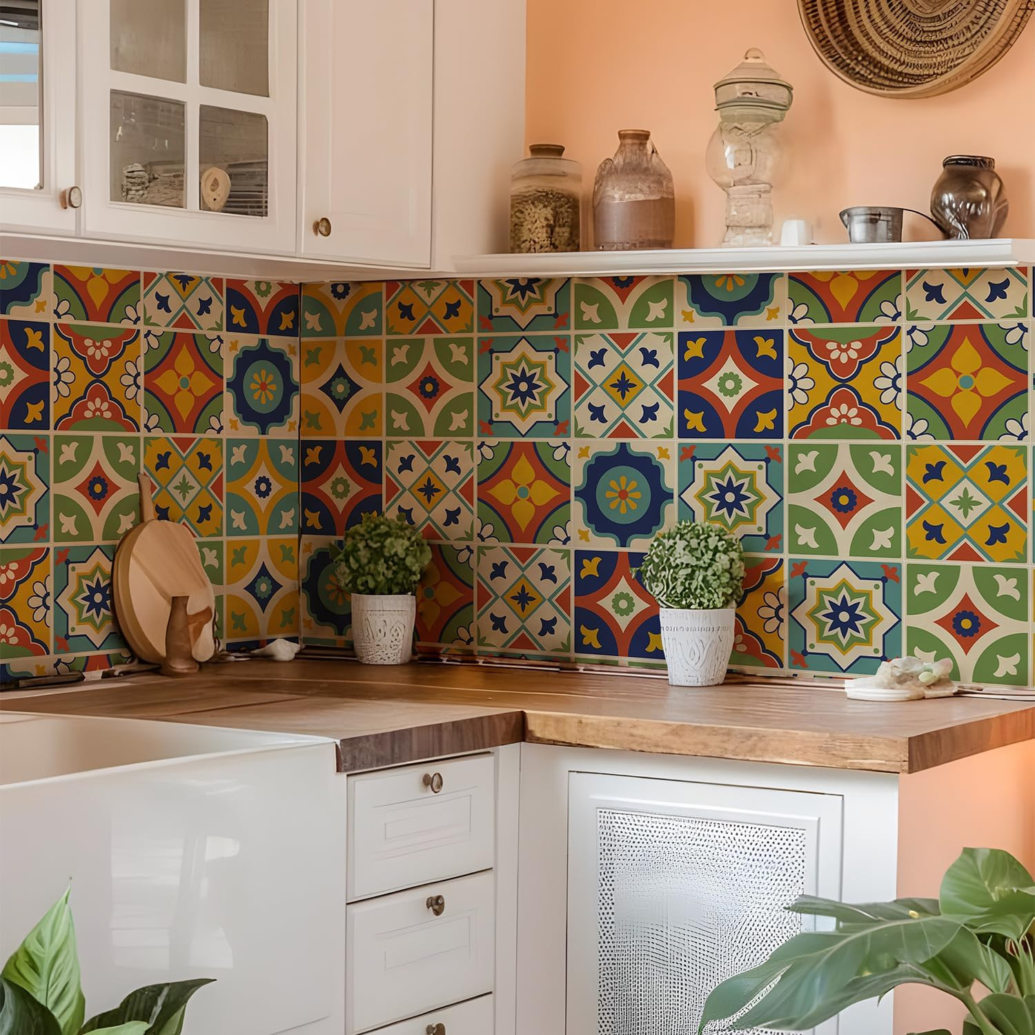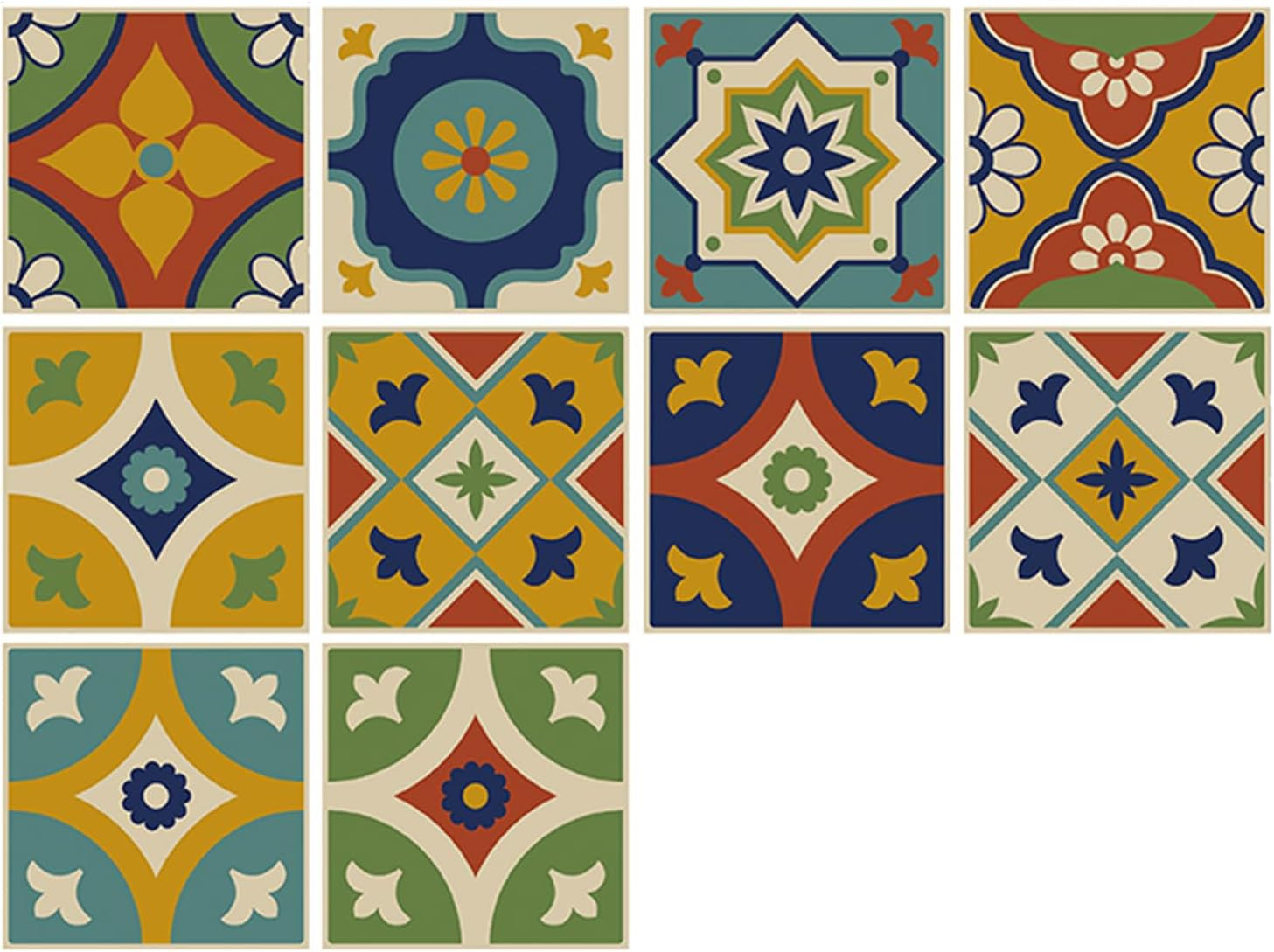 10-Pack Colorful Azulejos Ceramic Tile Vinyl Stickers Self-Adhesive Wall Decals