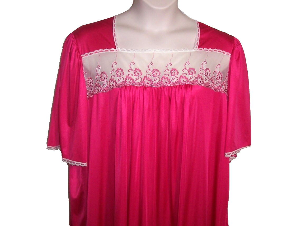 VTG DIXIE BELLE RARE NIGHTGOWN 2X PLUS SIZE ROSE PINK MESH LACE BODICE A