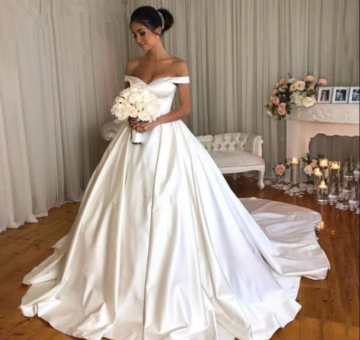 как выглядит Elegant Wedding Dresses Satin Off The Shoulder A Line White Ivory Bridal Gowns фото