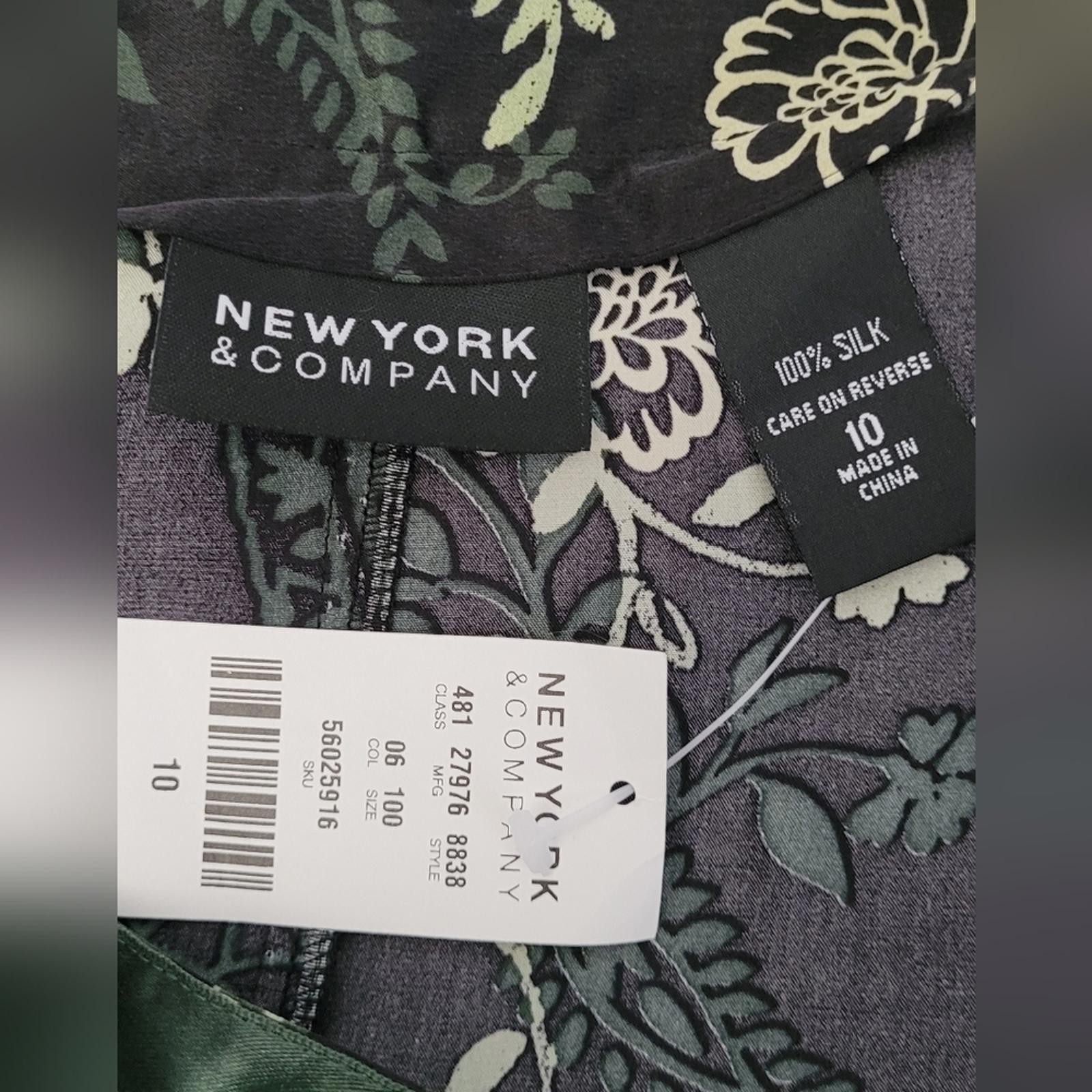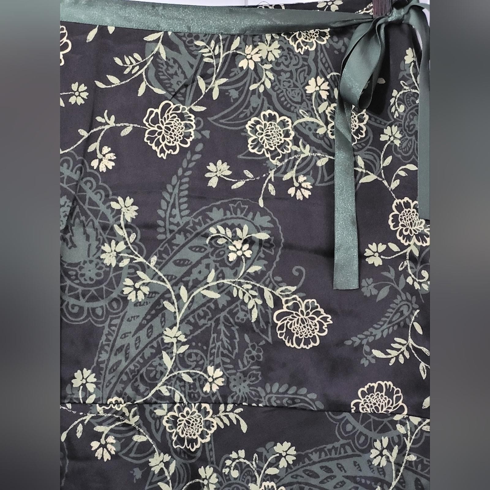 как выглядит Nwt New York Company 100 Silk A Line Midi Skirt Black Hunter Green Floral Pat фото
