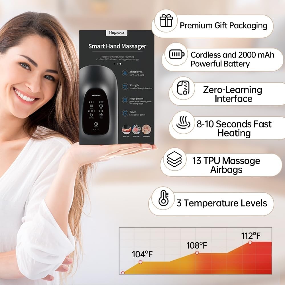 Hand Massager with Heat and Compression for Arthritis and Carpal Tunnel Relief