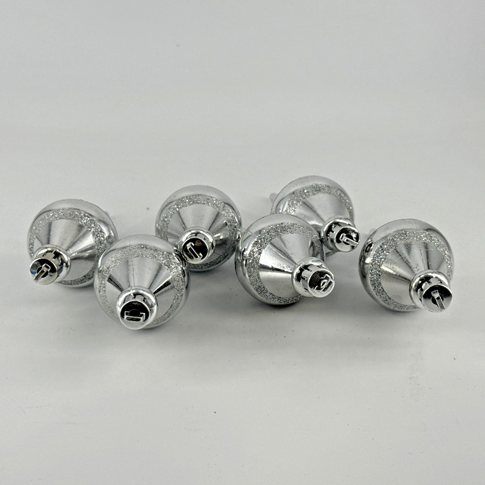 6 Vintage Silver Finial Shatterproof Glitter Christmas Ornaments Retro Rare