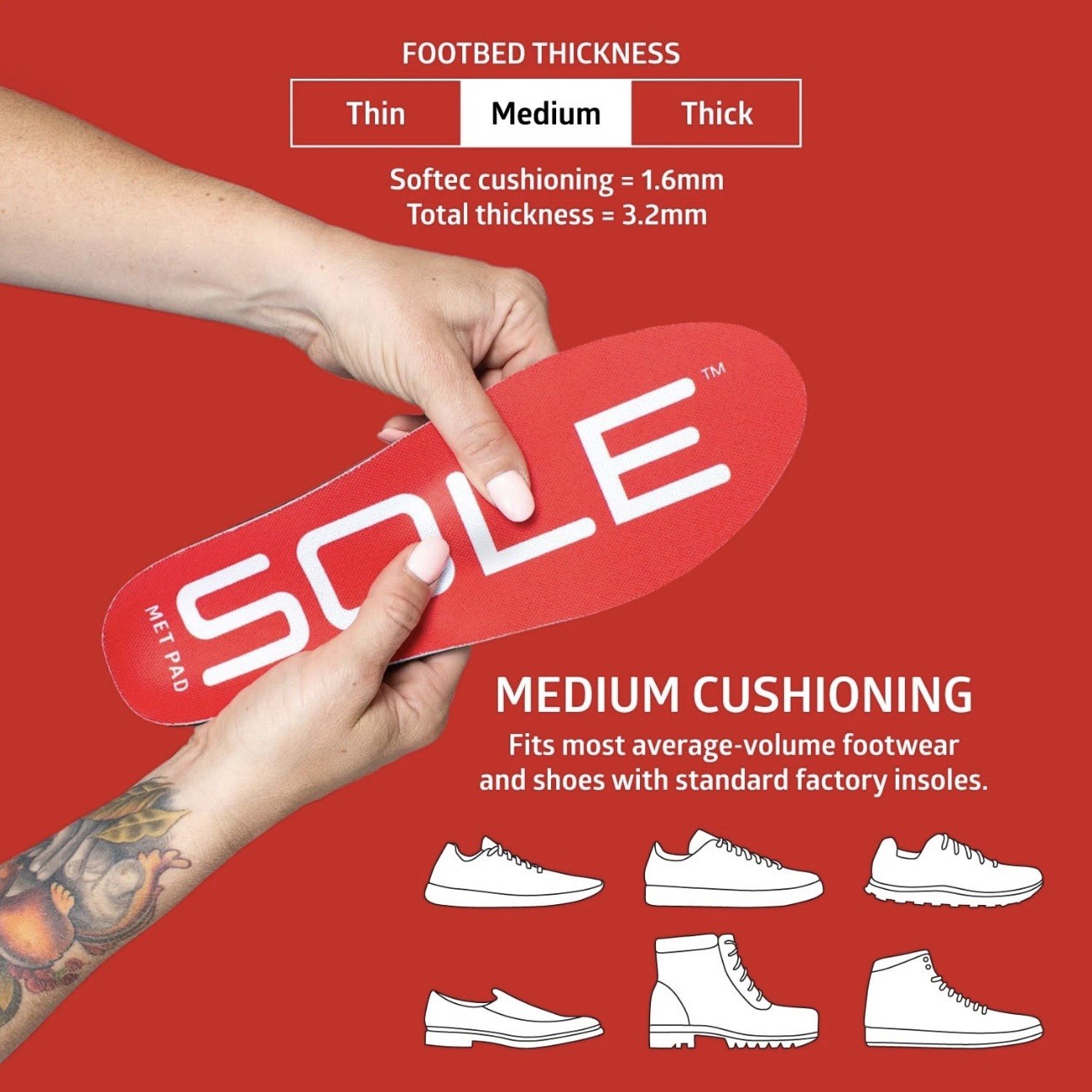 SOLE Active Medium Insoles Met Pad - Heat Moldable Orthotic Inserts Size M10 W12