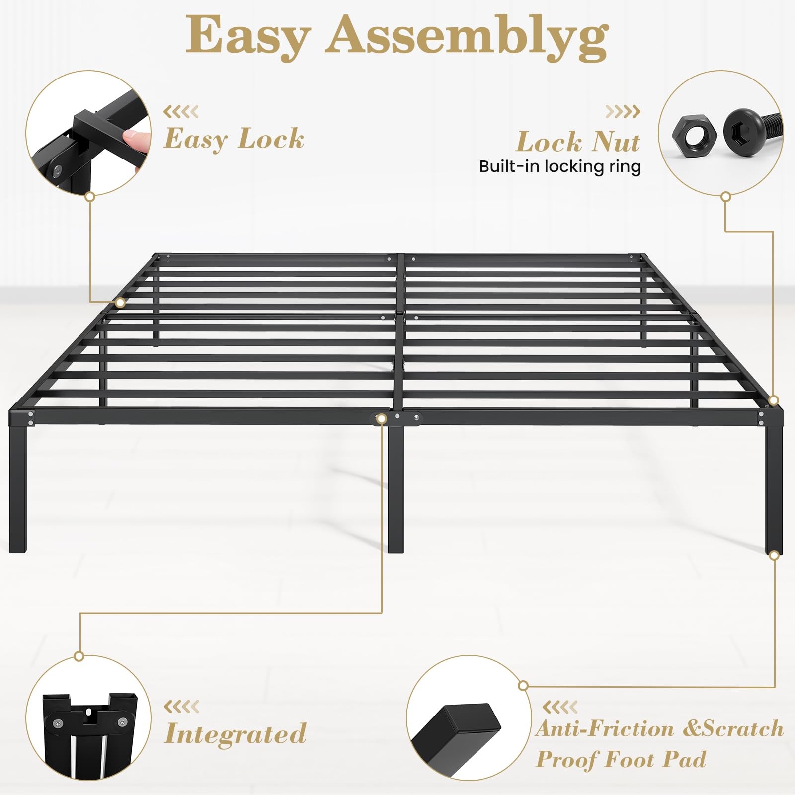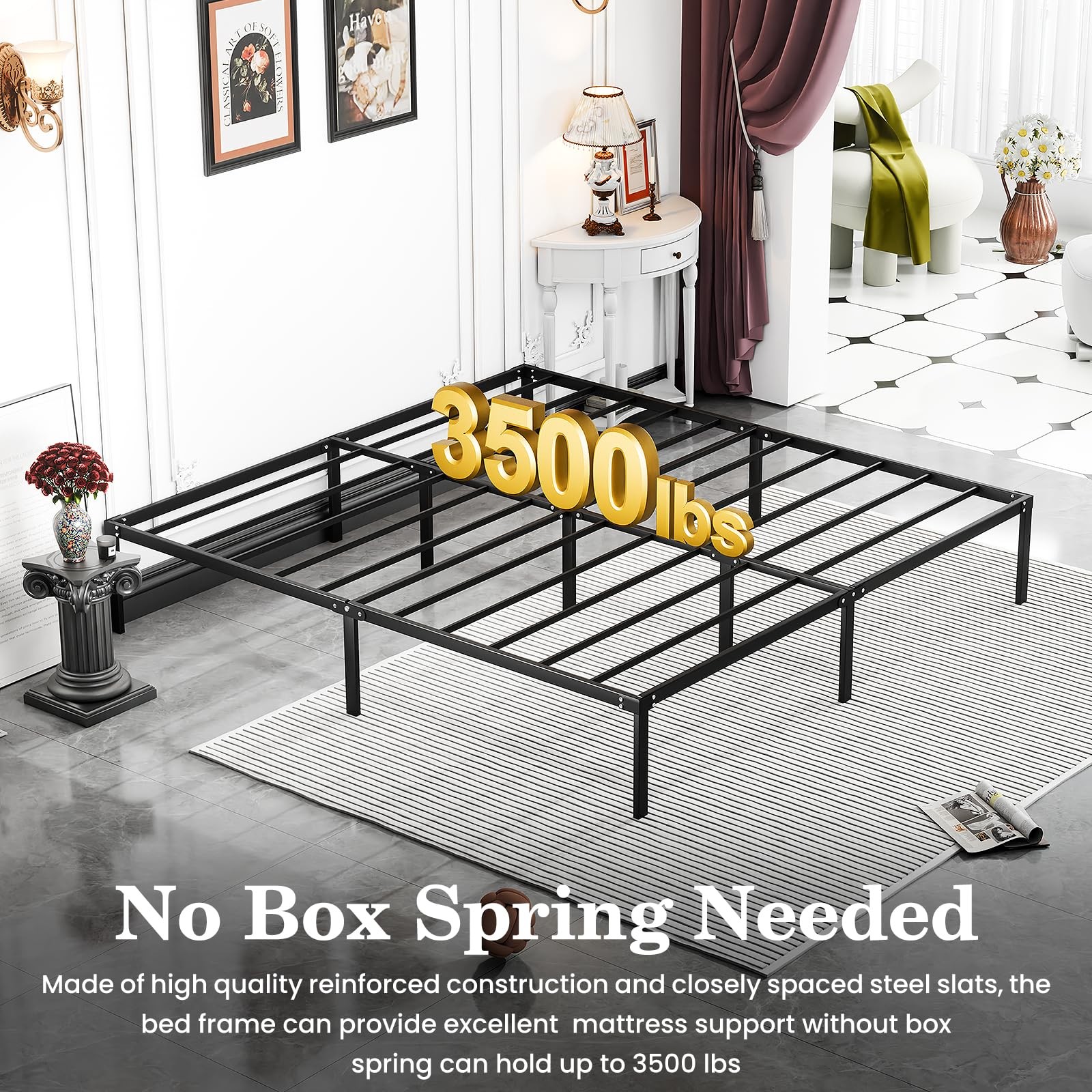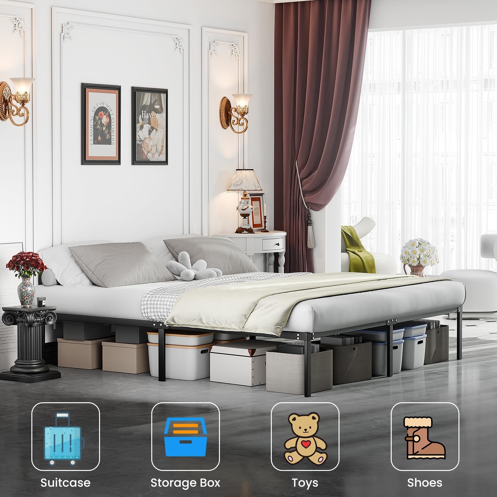 King Bed Frame Heavy Duty 14 Inch Sturdy Metal Platform with Strong Bearing
