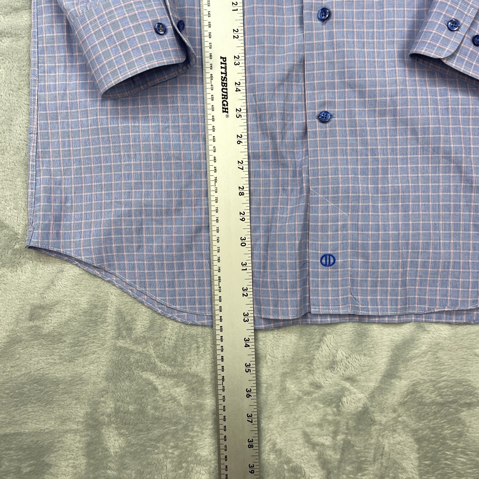 как выглядит David Donahue Dress Shirt Mens XL Blue Check Trim Fit Long Sleeve Button Up фото