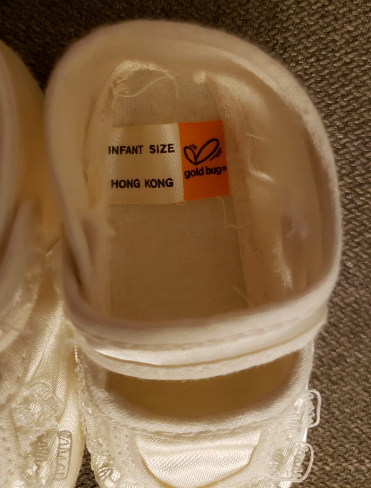 Vintage 1980 Adorables Mary Jane Lace Infant Size Shoes White Gold Bug Baby Doll